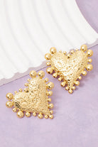 This pair of stud earrings brings a stunning gold dipped intricate heart large style. Witness the transformative power of accessories as this piece effortlessly redefines your fashion narrative.