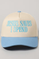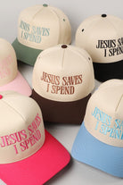 This 5-panel trucker hat features the bold "JESUS SAVES I SPEND" lettering design, proudly embroidered in the USA. Made with 100% cotton canvas and adjustable snapback closure, this hat is not only stylish but comfortable. Show your faith while staying on trend.