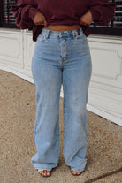 These Same Thing Jeans in a light wash feature a 33" inseam and a wide-leg cut for an effortlessly stylish silhouette. Crafted with stretch fabric, they offer comfort and flexibility while maintaining shape throughout the day. Ideal for those seeking a modern fit that combines ease of movement with a contemporary look.