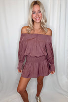 With Me Now Off Shoulder Mini Dress/ Dusty Purple