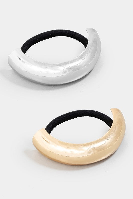 Metallic Half Ring Accent 2Pc Hair Tie Set
