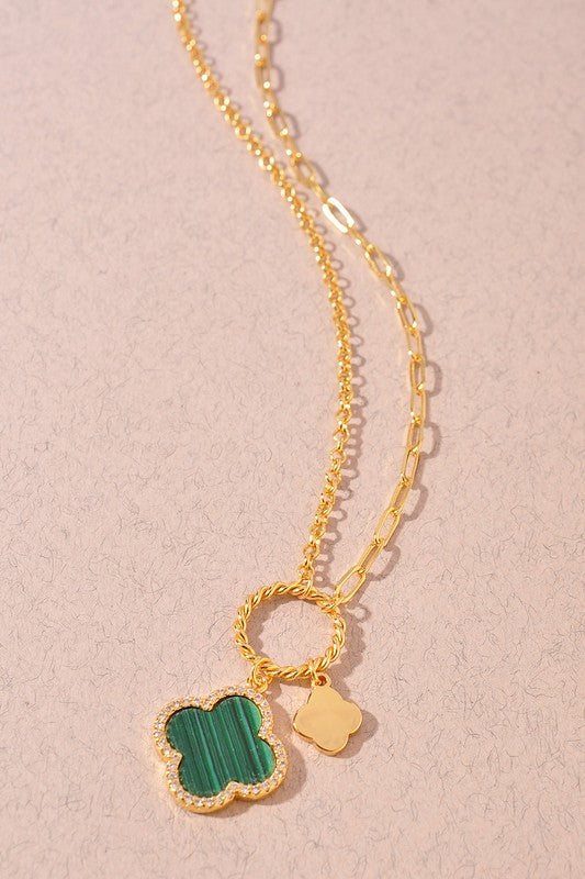 Clover Pendant Necklace/ Green
