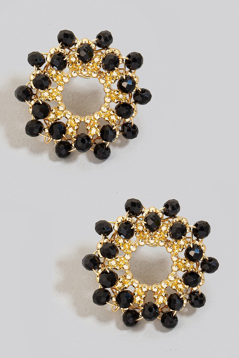 Cluster Faceted Glass Beaded Hoop Stud Earrings/ Black
