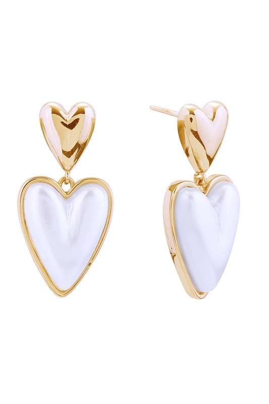 Double Hearts Pearl Post Earrings