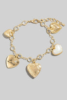 Indulge in the perfect balance of elegance and playfulness with our Heart Love Charms Chain Bracelet. Featuring a mix of pearls and heart-shaped charms, this bracelet will add a touch of romance to any outfit. Show your love with style!