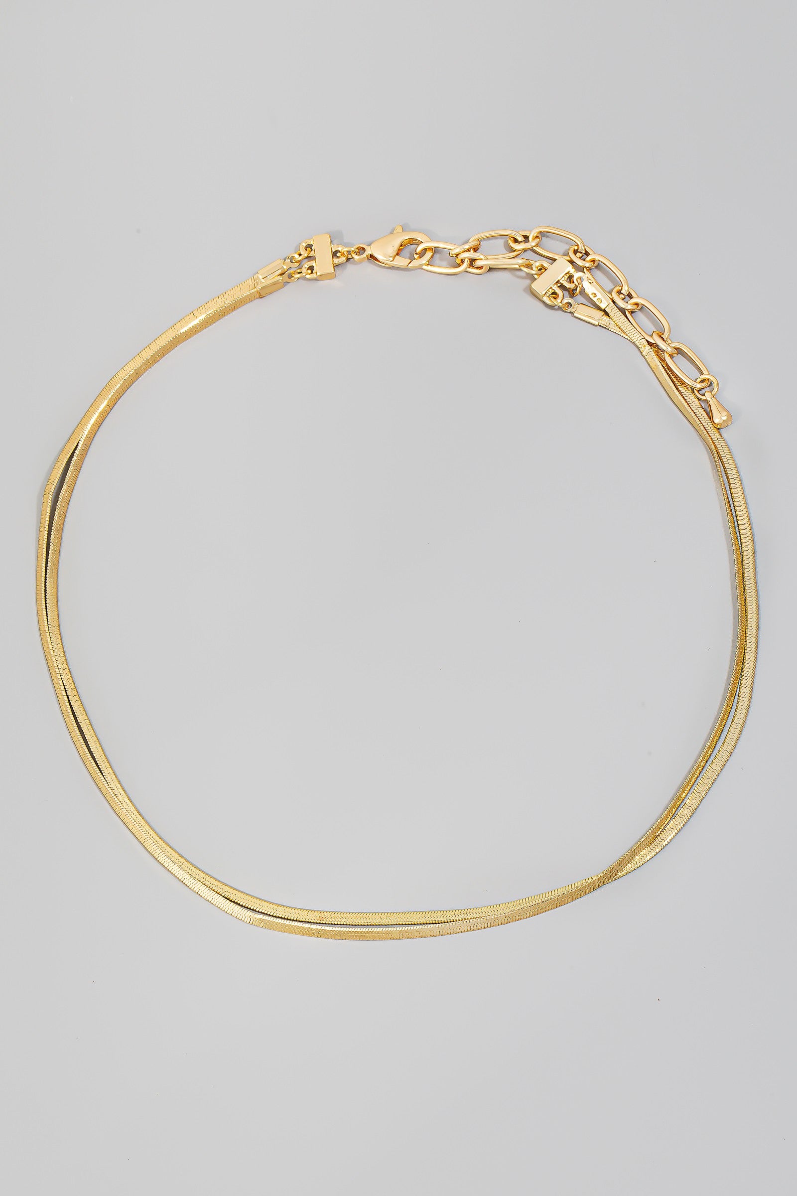 Elevate your jewelry game with our Layered Metallic Flat Chains Necklace. Each layer of flat chains adds a touch of luxury and sophistication to your outfit. Made with high-quality materials, this necklace is the perfect statement piece for any occasion. Upgrade your style and stand out from the crowd with this exclusive necklace.
