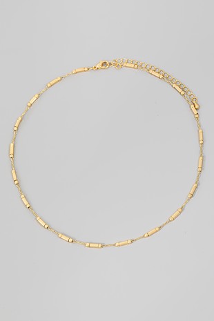 Adorn yourself with our daring Metallic Bar Beaded Chain Necklace. With its shimmering design and bold construction, this necklace is perfect for those who love to take risks and make a statement. Elevate any outfit with this must-have accessory. Unleash your inner adventurer and add it to your collection today!