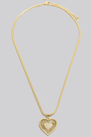 Pave Metallic Heart Chain Necklace