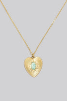 Stainless Steel Oval Stone Stud Heart Pendant Necklace/ Blue