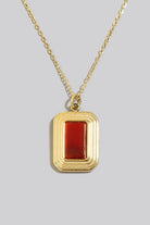 Stainless Steel Rectangle Stone Pendant Necklace/ Red