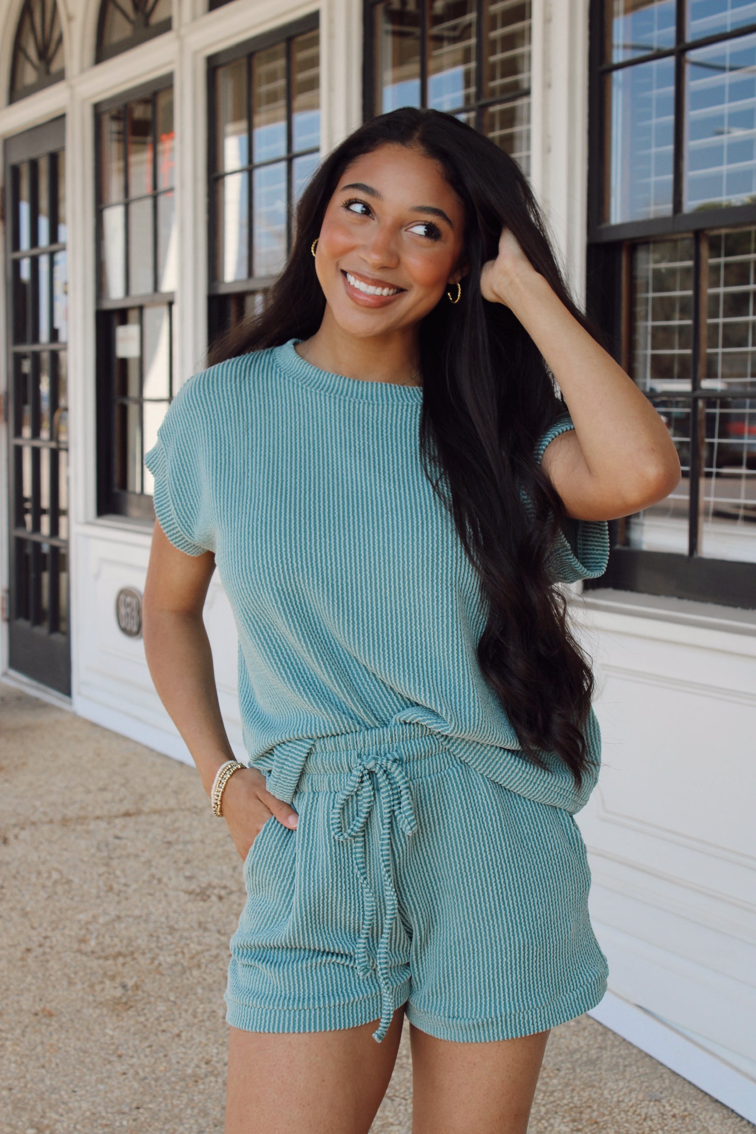 This ribbed set is your new best friend! The cap sleeve top features a flattering round neckline and textured raised ribs that add dimension and visual interest, while the coordinating shorts deliver comfort with a bonus pocket. Throw them on together for a coordinated look, or style each piece separately for maximum versatility. Whether you're relaxing at home or stepping out for the day, this set keeps you looking chic and feeling great.