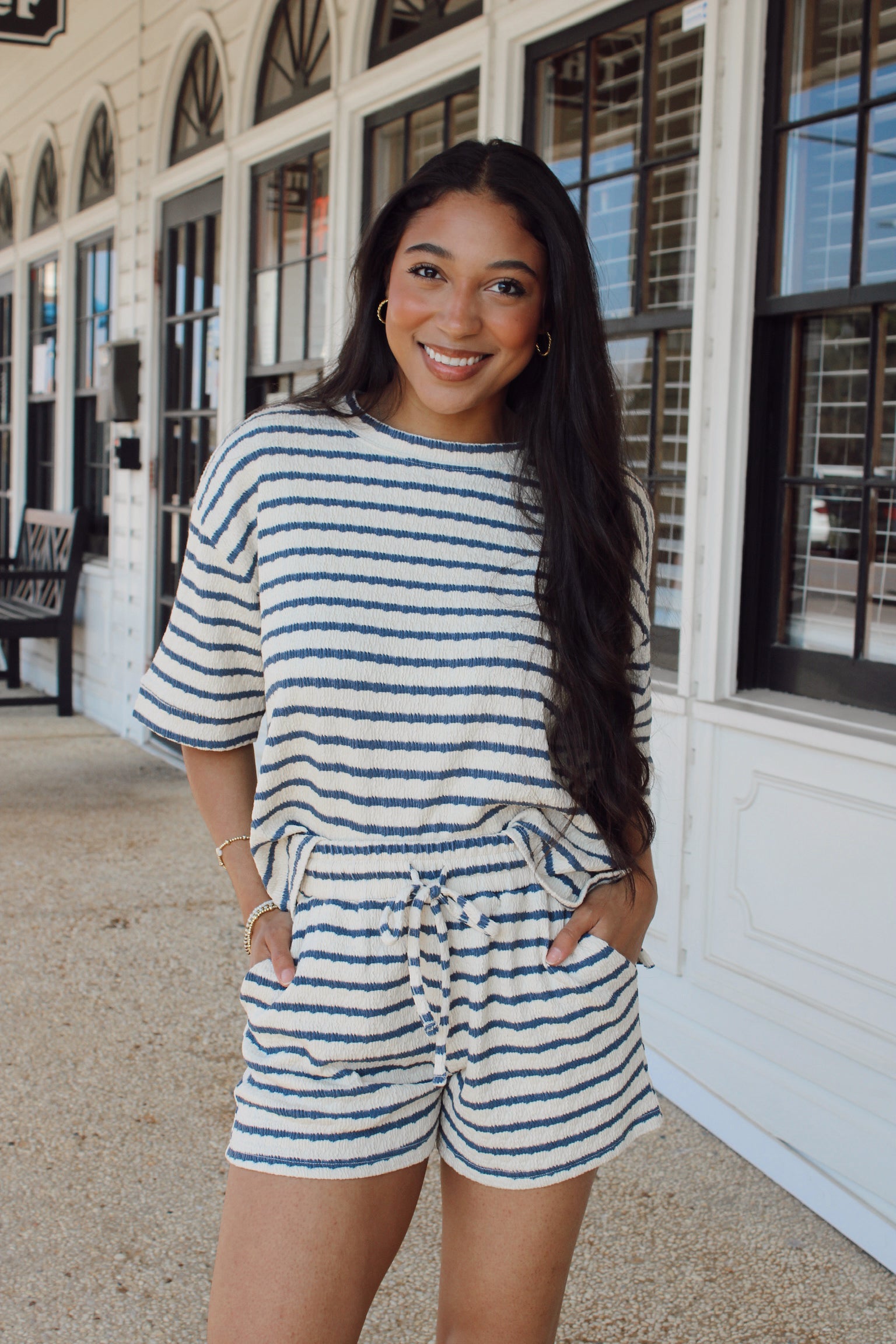 Mix comfort with style in this playful striped short sleeve tee and shorts set. Crafted from a breathable blend of 50% cotton, 43% polyester, and 7% spandex, this duo offers the perfect balance of softness and stretch for all-day wear. The shorts feature a convenient drawstring waistband for an adjustable fit. Whether you're lounging at home or running errands, this coordinated set keeps you looking effortlessly put-together with a fun, casual vibe.
