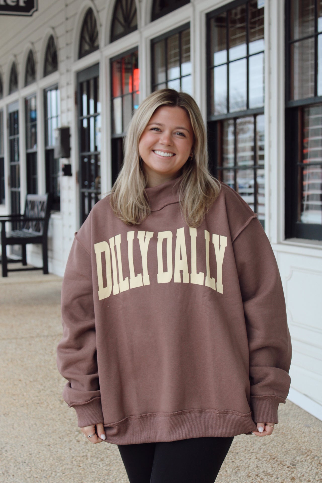 Dilly Dally Mockneck Sweatshirt/ Coffee