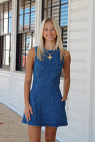 Get ready to turn heads in the Drive Around Town Dress! This sleeveless denim beauty features a comfy round neck and a breezy fit, perfect for warm days and spontaneous adventures. Whether you're cruising the city streets or meeting friends for brunch, this dress keeps things cool, casual, and effortlessly stylish.