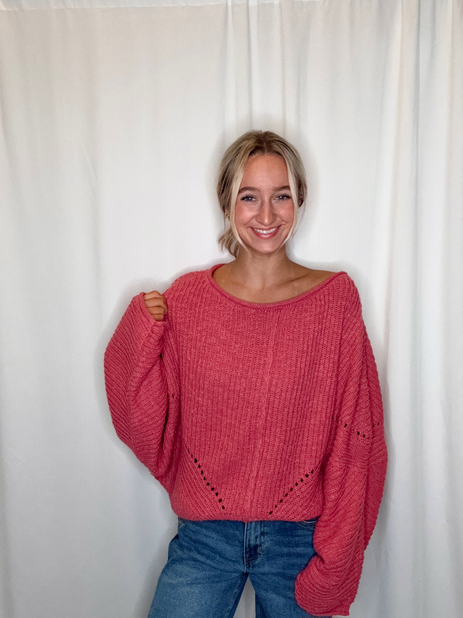 Face The Day Drop Shoulder Sweater/ Rose