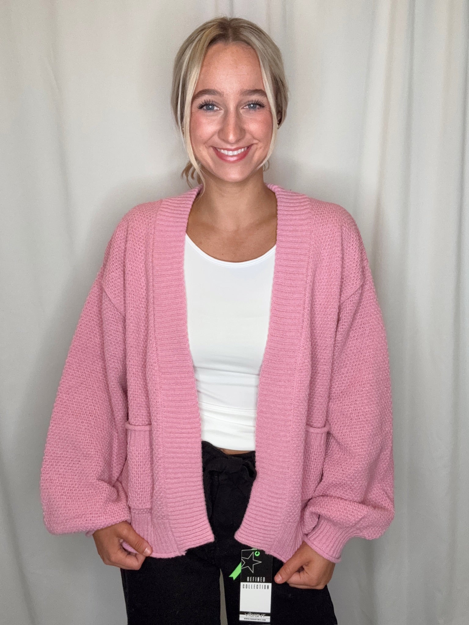 Wrap yourself in cozy vibes with this oversized texture knit cardigan—the perfect layering piece for effortless fall style. Crafted from soft, touchable knit fabric, it drapes beautifully over your favorite tees and dresses. The relaxed fit and gentle texture create that coveted lived-in look, while the soft pink hue adds a romantic touch to any outfit. Whether you're sipping cider at the pumpkin patch or curling up with a good book, this sweater is your new go-to for comfort that doesn't compromise on charm.