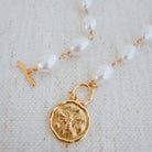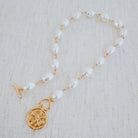 This chic necklace features a modern take on a classic baroque style, with a lovely golden bee design. Elevate your look with this elegant and timeless piece.