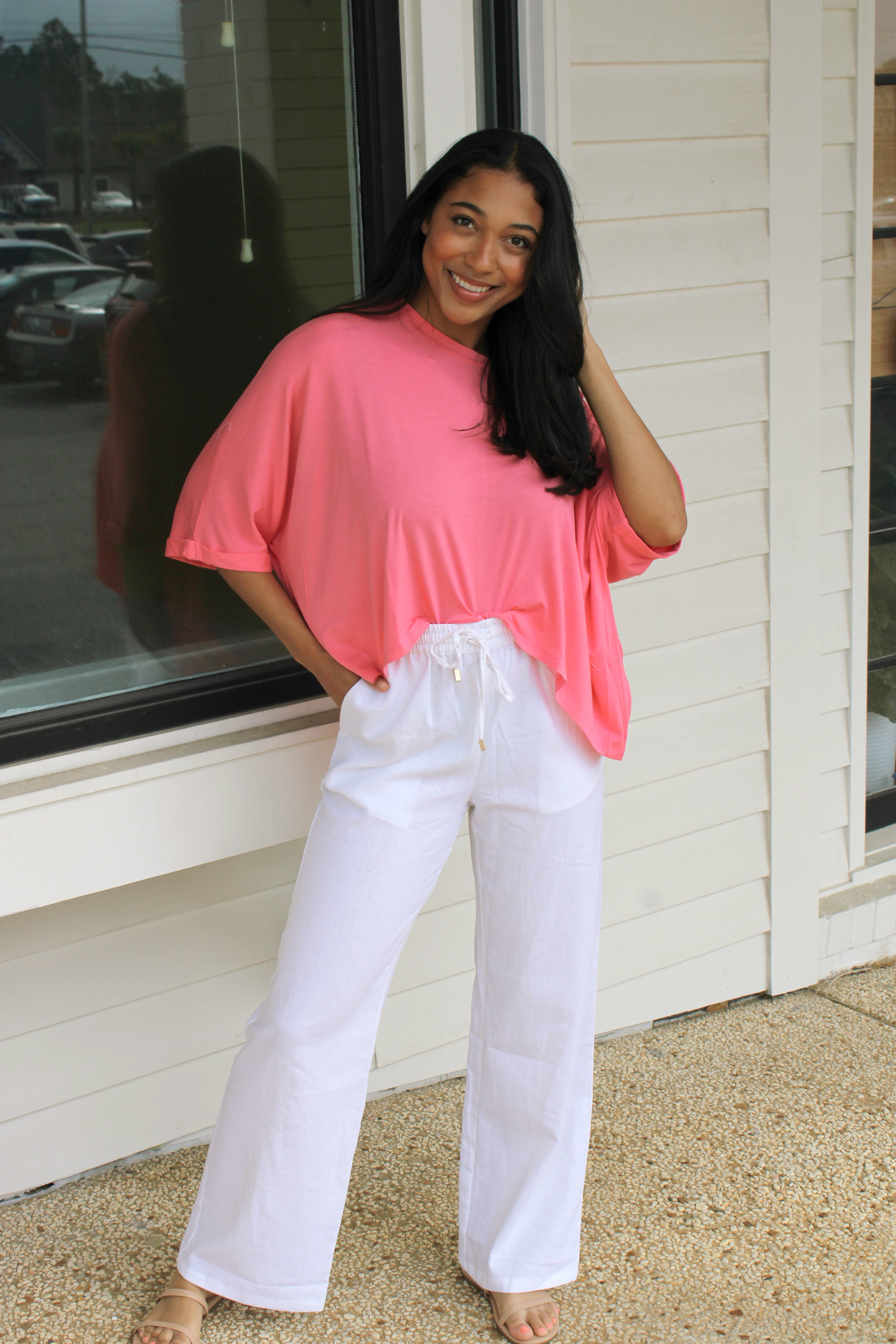 Introducing the Layla Linen Blend Pants—effortless elegance meets everyday comfort. Crafted from a premium 55% linen and 45% viscose blend, these relaxed wide-leg trousers offer the breathability of linen with enhanced softness and fluidity. The viscose reduces wrinkles while creating a graceful drape, perfect for warm-weather styling. Features include an adjustable waist for a custom fit, slant side pockets, a single back welt pocket, and polished gold-tone hardware. Versatile and sophisticated, these pants transition seamlessly from casual to refined occasions.