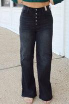 These high-rise wide-fit jeans offer comfortable roominess without compromising style. Designed with classic 5-pocket construction and a secure five-button closure, they provide a flattering fit and practical details. Perfect for anyone seeking both comfort and timeless denim appeal.