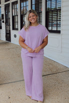 Crafted from soft washed slub knit fabric, the Maddie Set in purple offers both comfort and texture. Its breathable material ensures all-day ease, while the relaxed fit supports effortless layering or solo wear. Ideal for those seeking a versatile, refined casual look with expert attention to tactile detail.