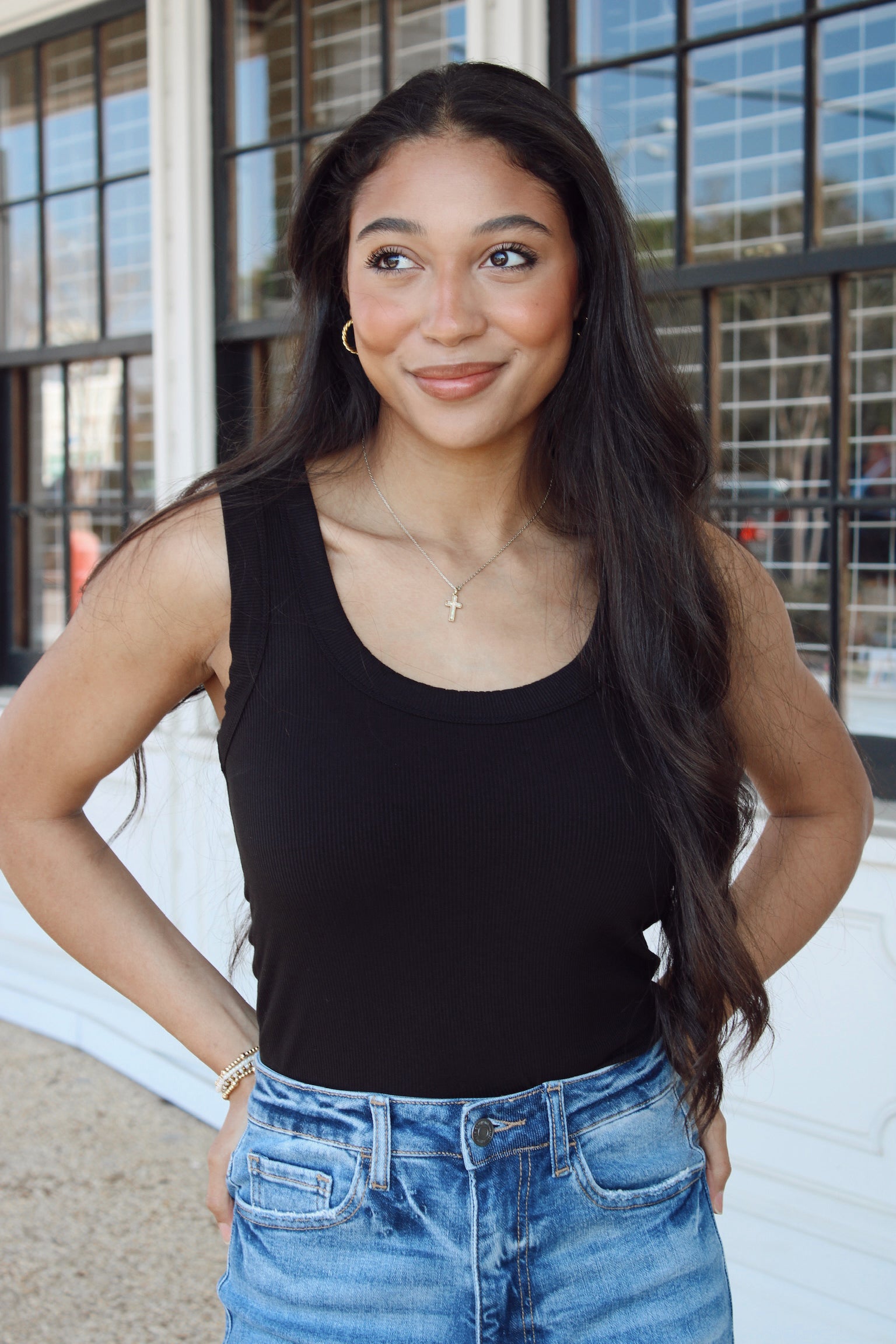 Meet your new go-to tank that does it all. The Riley features a flattering scoop neckline and cozy ribbed texture that hugs in all the right ways. Whether you're layering it under a blazer for work or pairing it with your favorite jeans for weekend vibes, this tank is ready for anything. Simple, stylish, and seriously versatile—basically your closet's best friend.