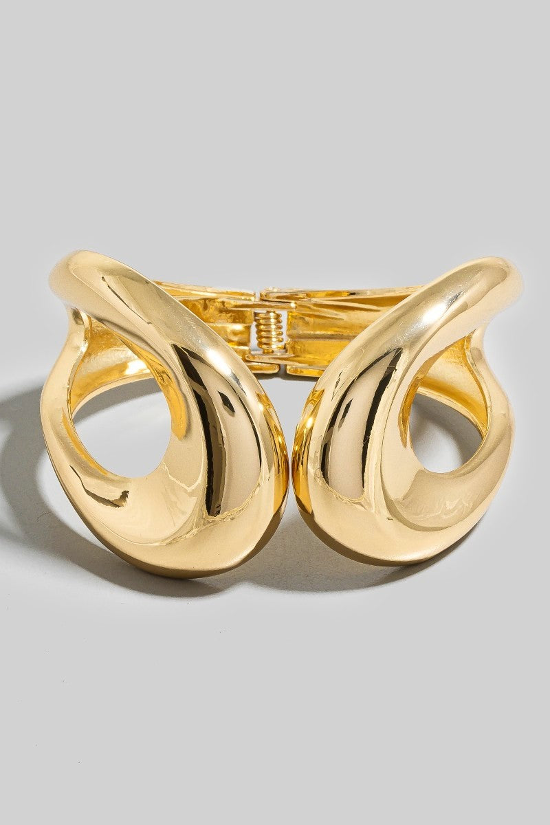 Snap into style with this gleaming round hinged cuff bracelet! The smooth metallic finish catches the light beautifully, while the clever hinged design makes slipping it on and off a breeze. Perfect for stacking with your favorite pieces or wearing solo as a statement accessory. Whether you're dressing up for a night out or adding polish to your everyday look, this versatile beauty works with everything in your closet. A timeless piece that feels fresh and modern!