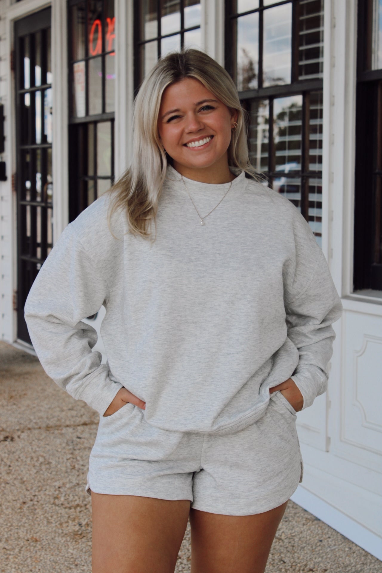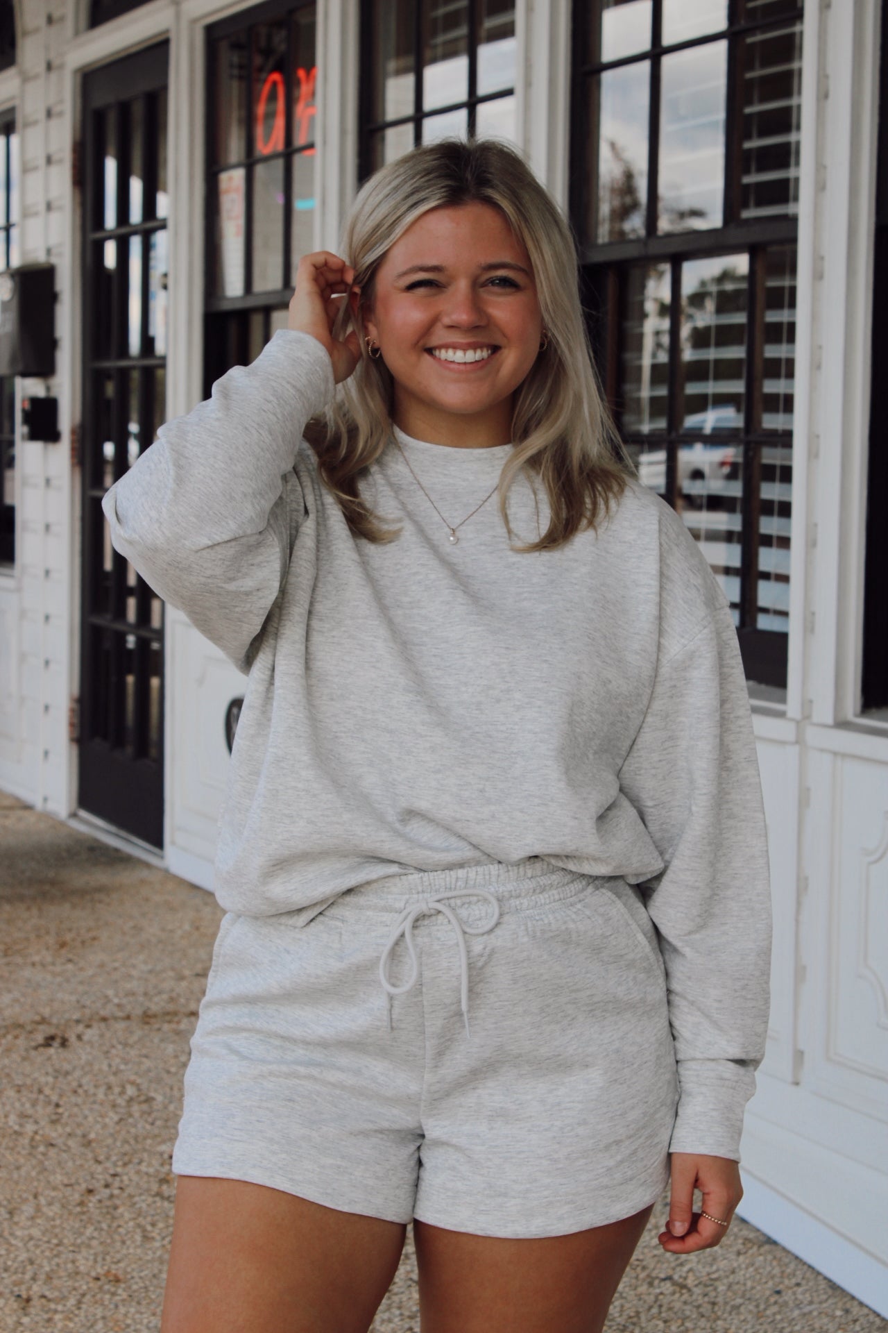 Speak Up Pullover Top and Shorts Set/ Heather Grey