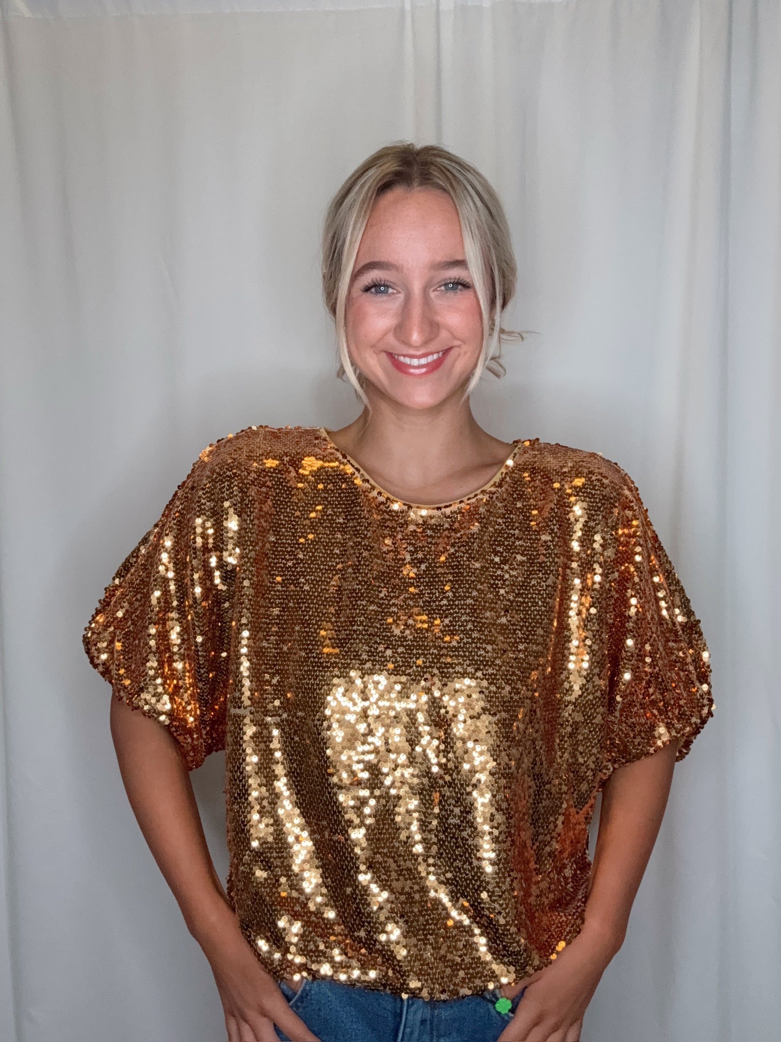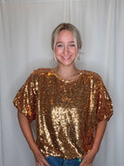 Shimmer and shine in this dazzling sequin top that's perfect for nights out or special celebrations. Featuring a classic round neckline and charming cap sleeves, this piece catches the light from every angle. The elastic trim keeps everything in place while you dance the night away. Whether you're heading to a party or want to add some sparkle to your everyday look, this sequin beauty delivers instant glamour without the fuss. Get ready to turn heads!