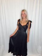 Elevate your holiday celebrations in this stunning Sweetheart Ruffle Hem Dress. The romantic sweetheart neckline flatters every figure, while delicate ruffles at the hem add movement and dimension to your silhouette. Crafted in classic black, this versatile piece transitions seamlessly from festive gatherings to elegant dinners. The fitted bodice creates a polished look that commands attention, making it the perfect choice for making unforgettable memories this season. Whether you're dancing at a holiday party or enjoying an intimate dinner, this dress delivers timeless sophistication with a modern twist.