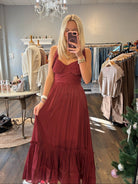 Elevate your holiday celebrations in this stunning Sweetheart Ruffle Hem Dress. The romantic sweetheart neckline flatters every figure, while delicate ruffles at the hem add movement and dimension to your silhouette. Crafted in burgundy, this versatile piece transitions seamlessly from festive gatherings to elegant dinners. The fitted bodice creates a polished look that commands attention, making it the perfect choice for making unforgettable memories this season. Whether you're dancing at a holiday party or enjoying an intimate dinner, this dress delivers timeless sophistication with a modern twist.