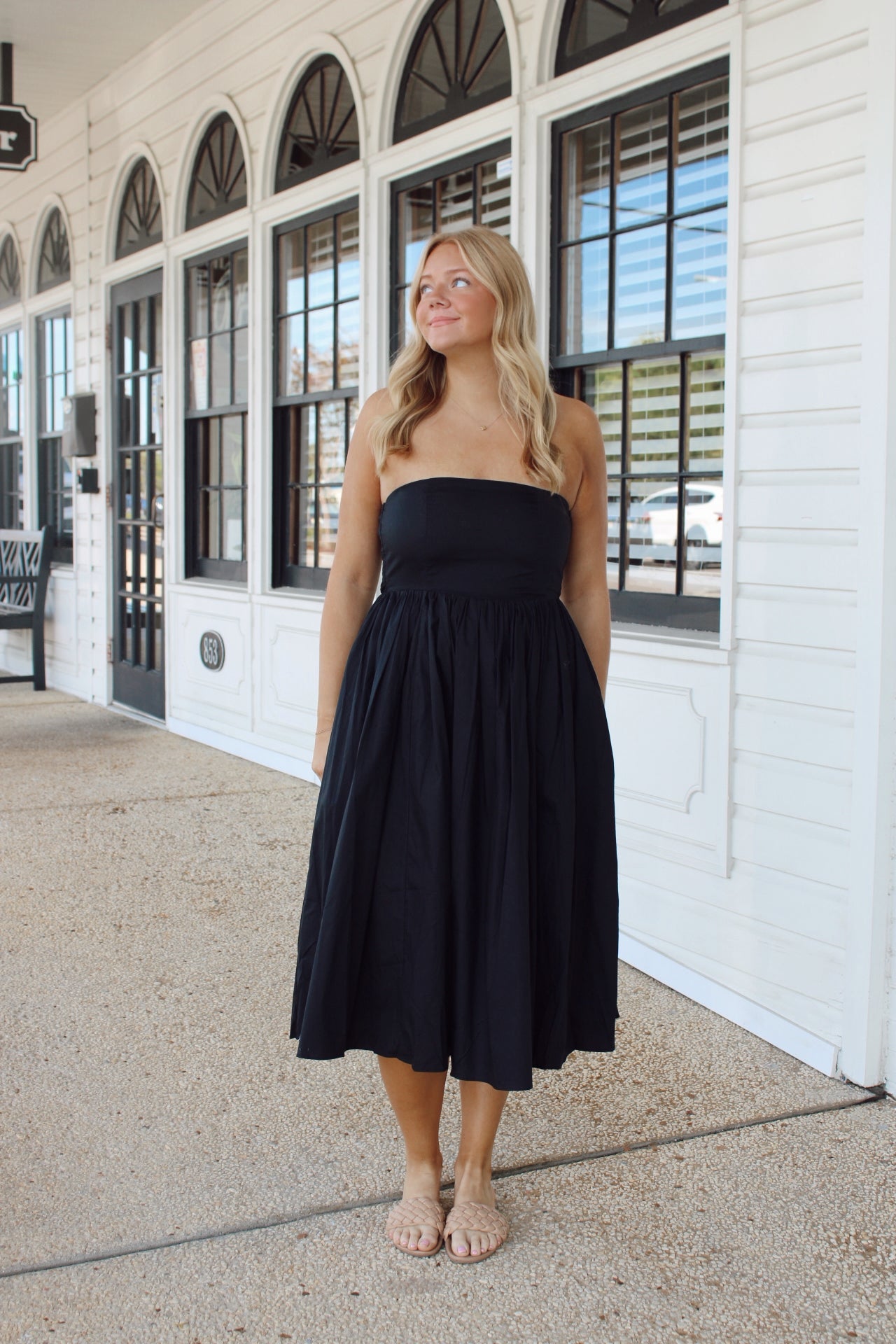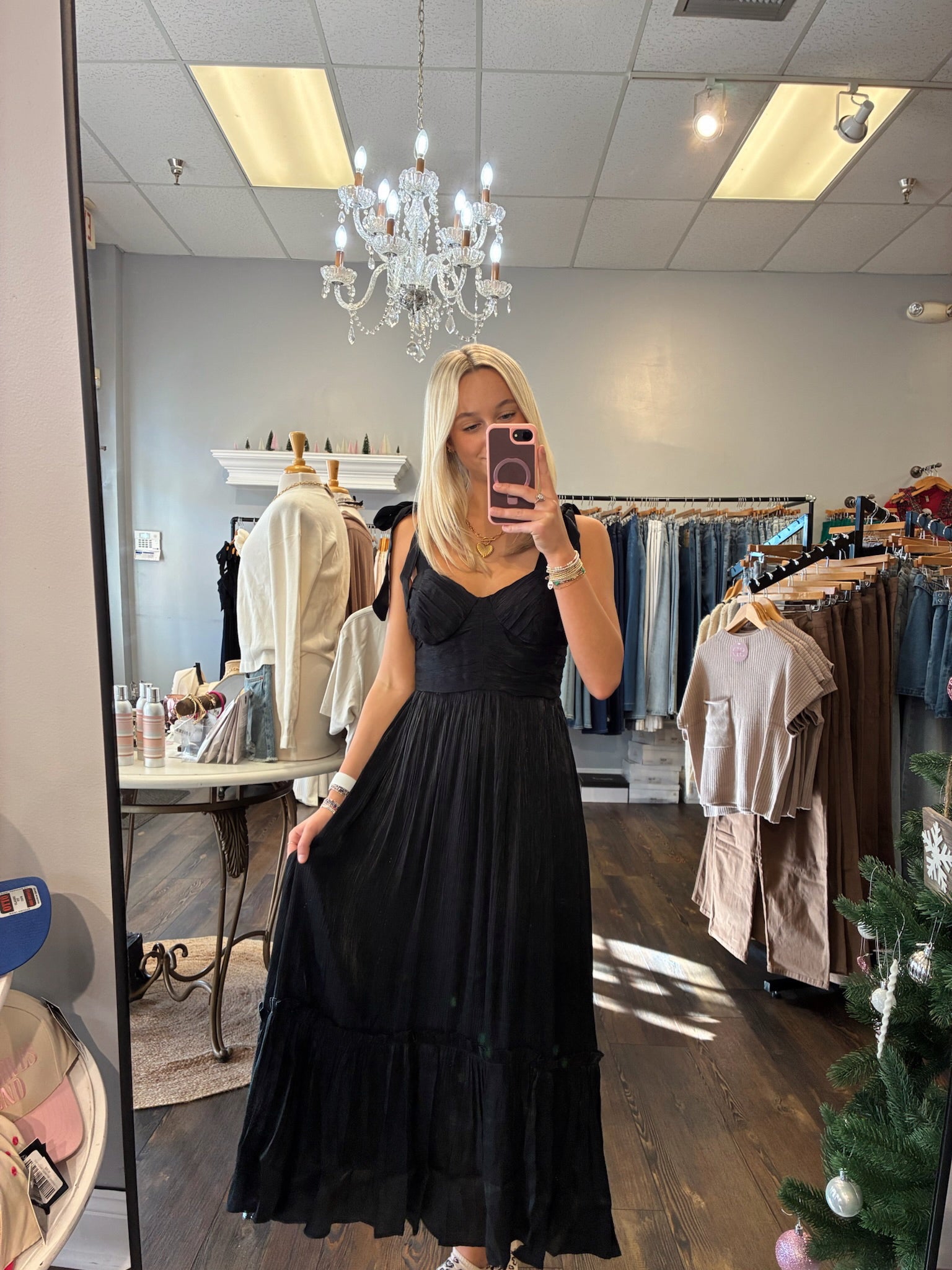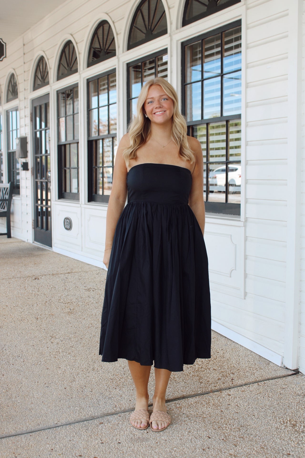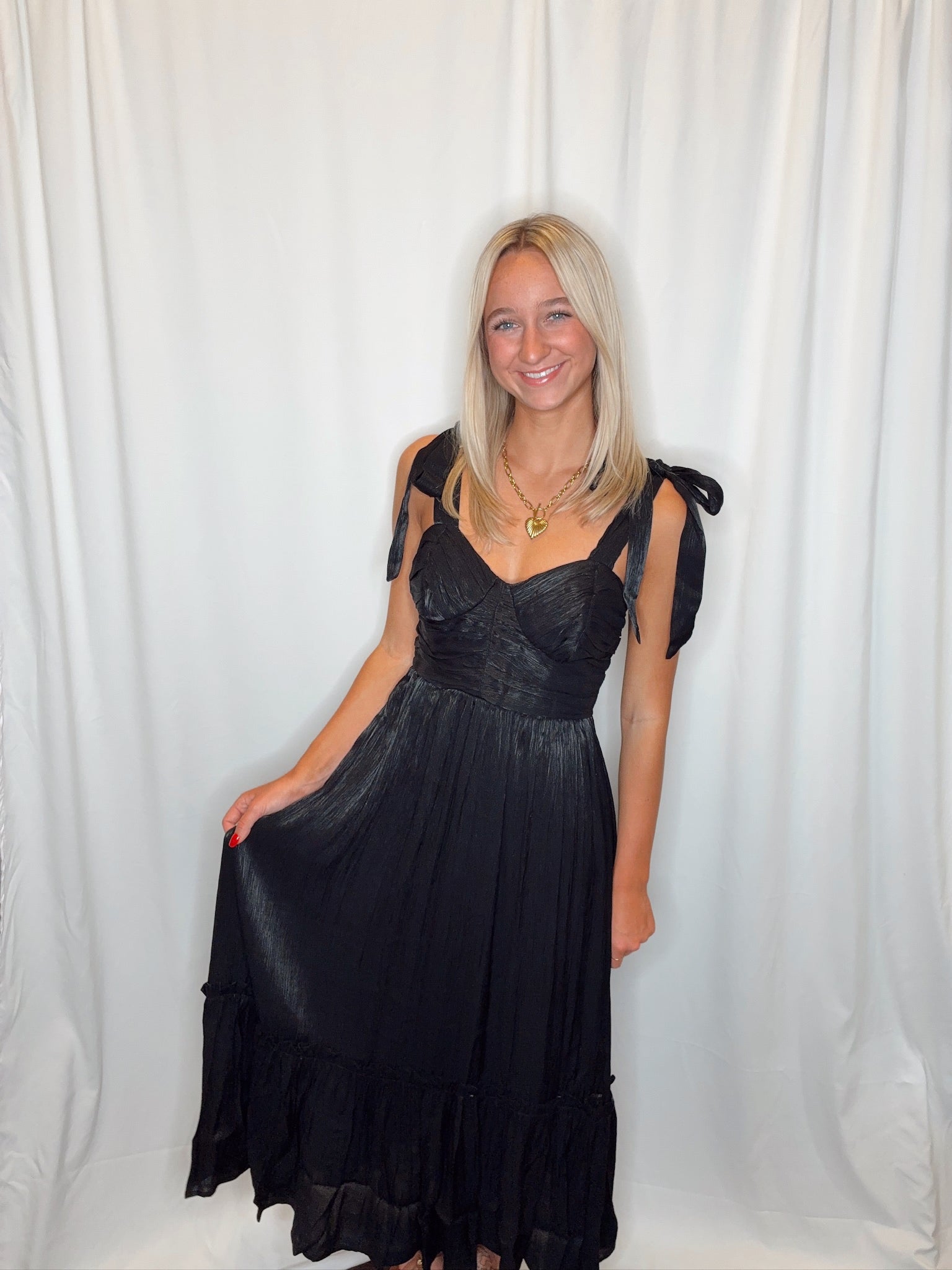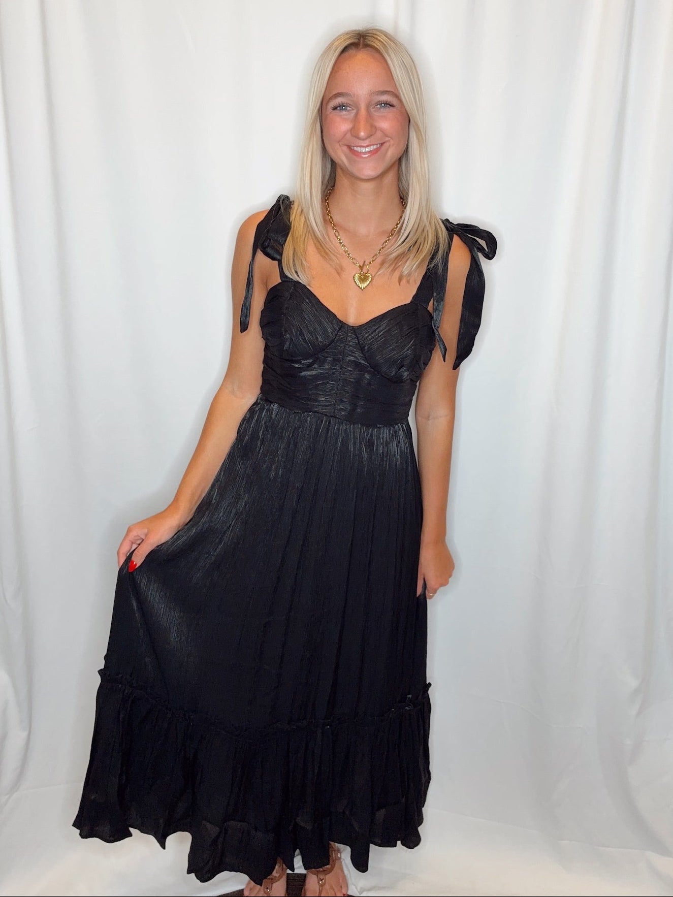 Sweetheart Ruffle Hem Dress/ Black