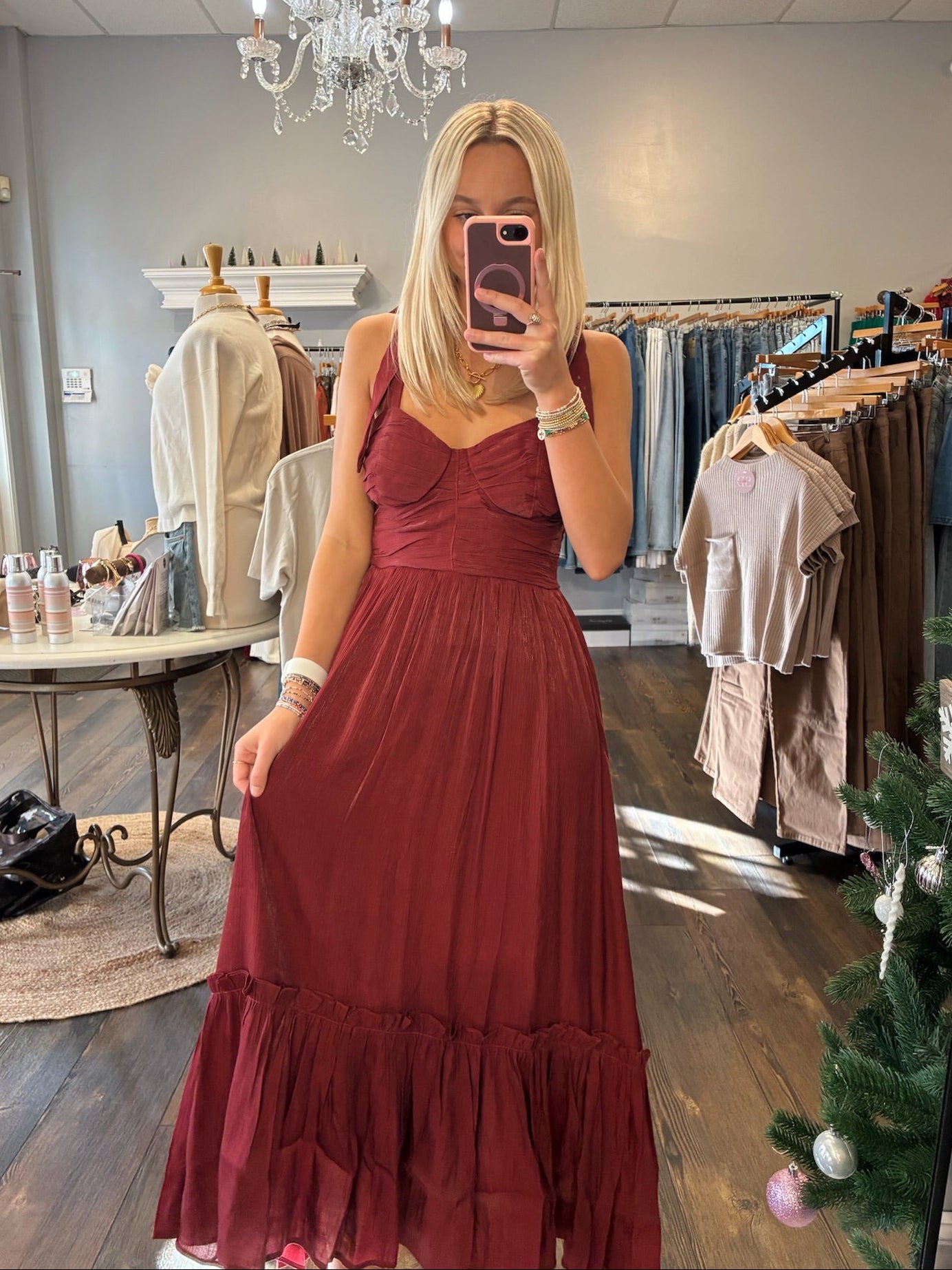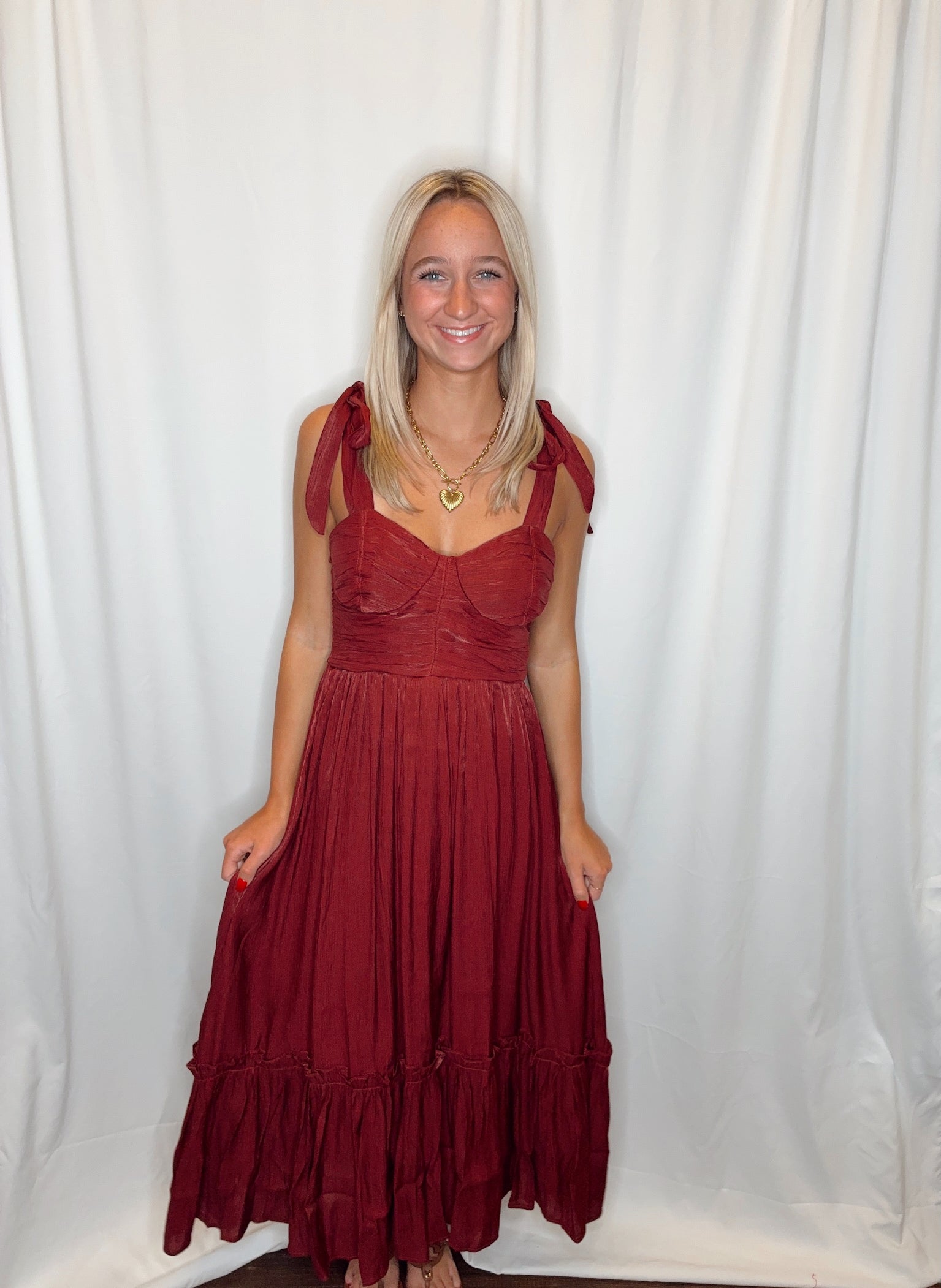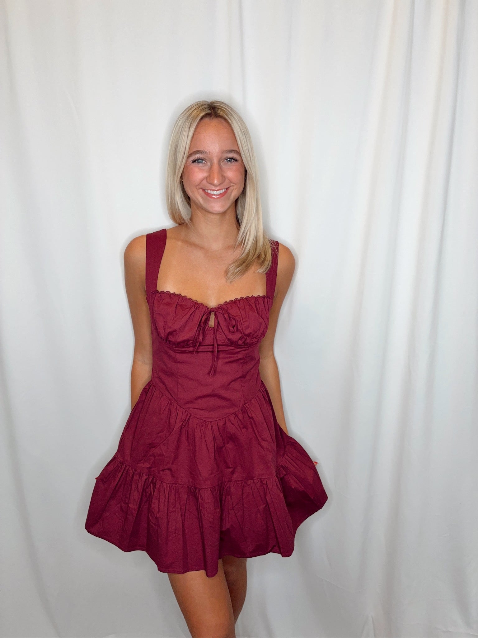 Sweetheart Ruffle Hem Dress/ Burgundy