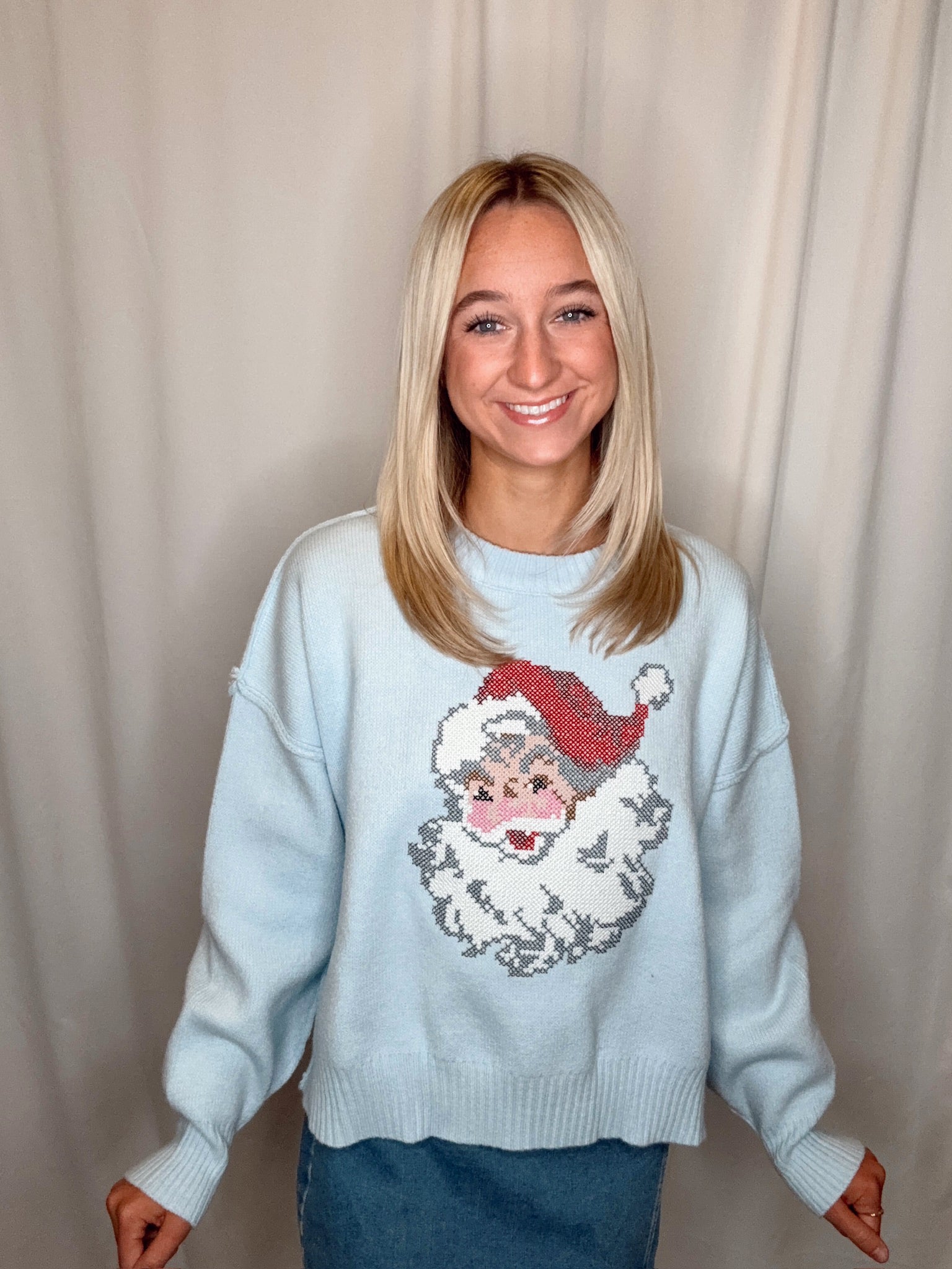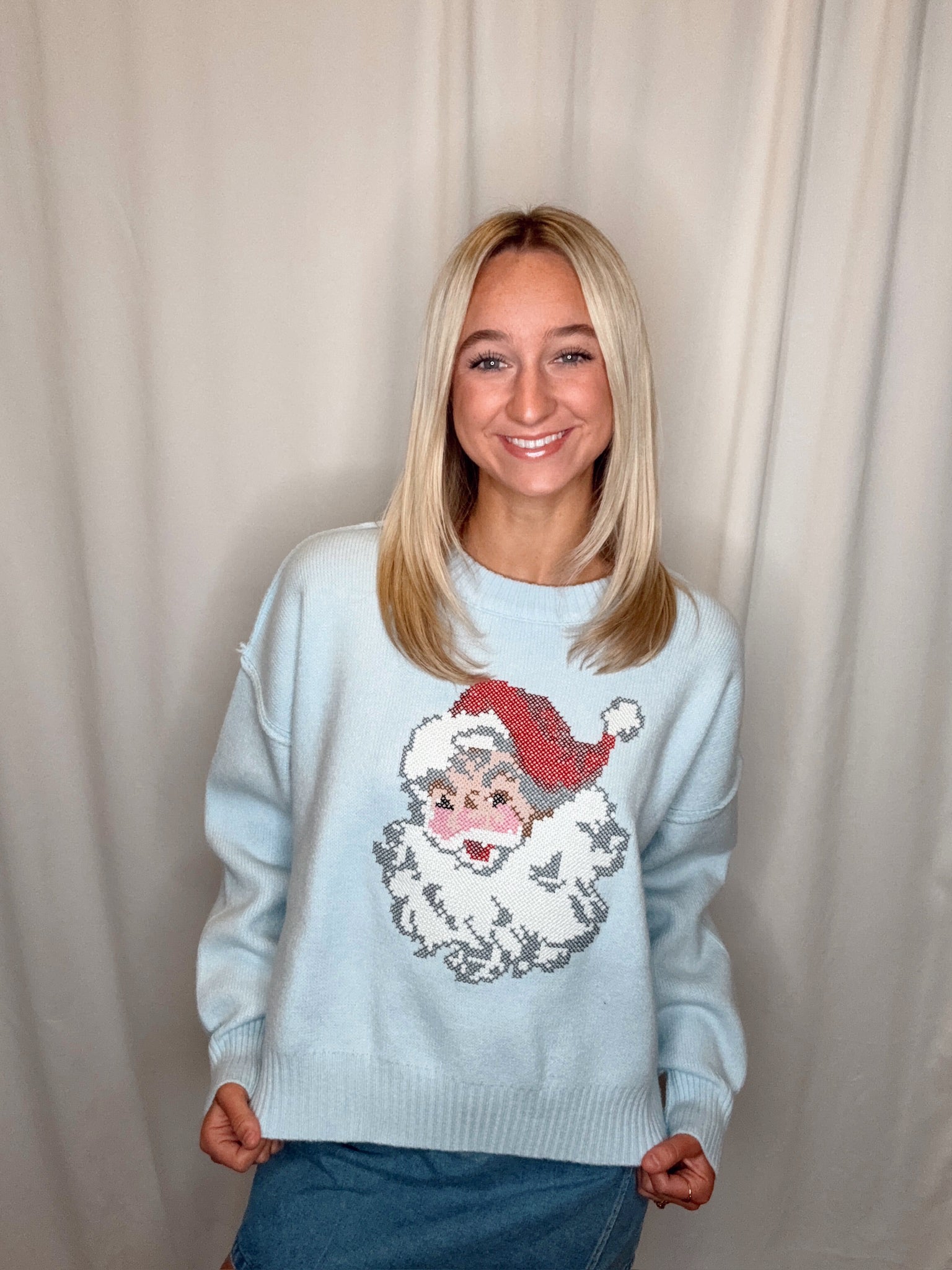 Santa Stitch Sweater/ Light Blue