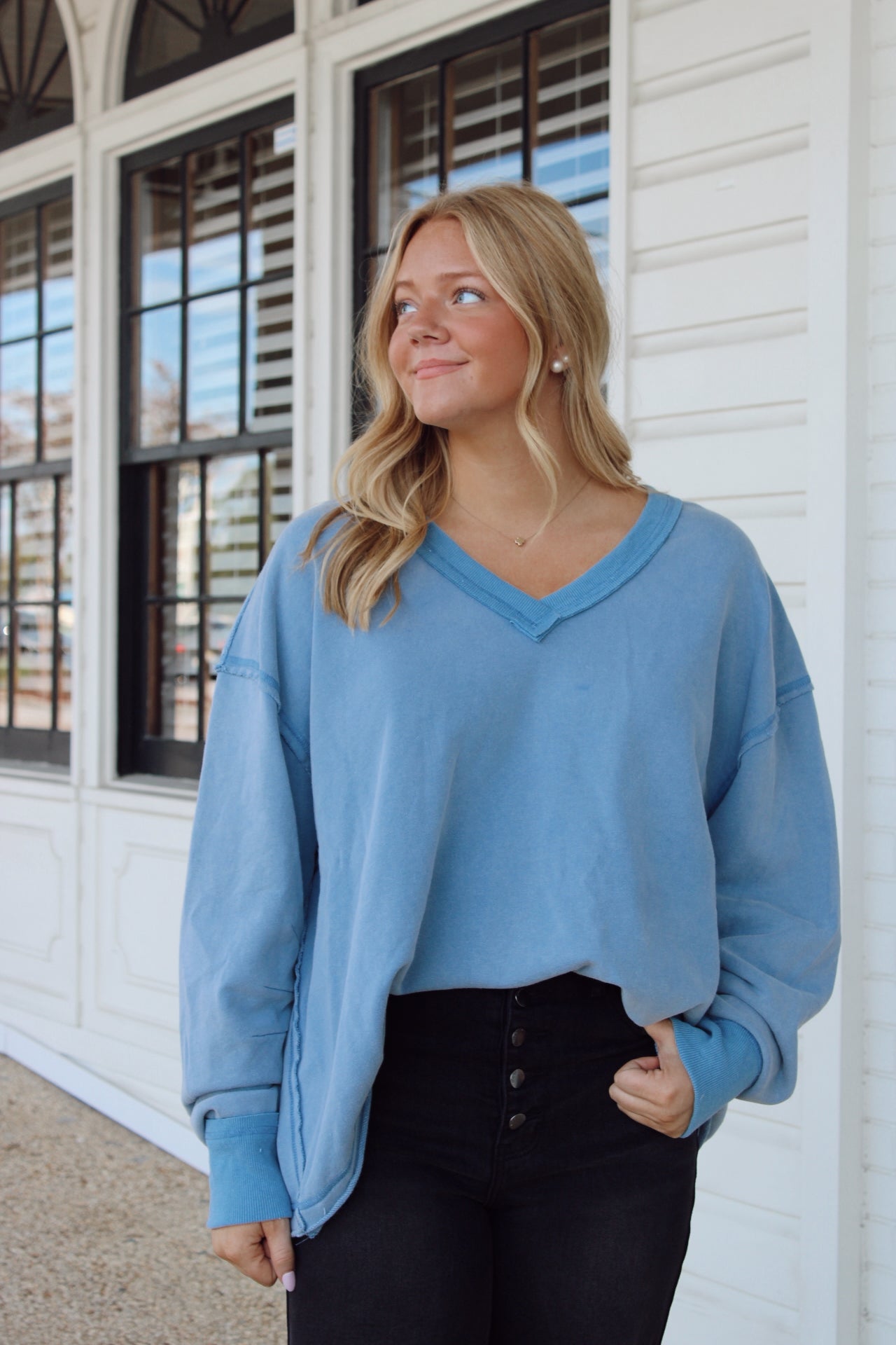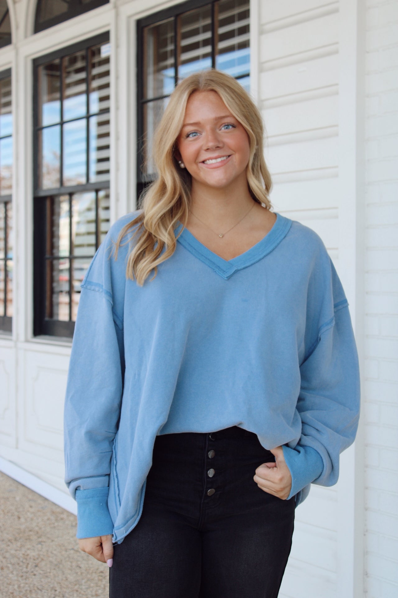 Bella French Terry Top/ Dusty Blue