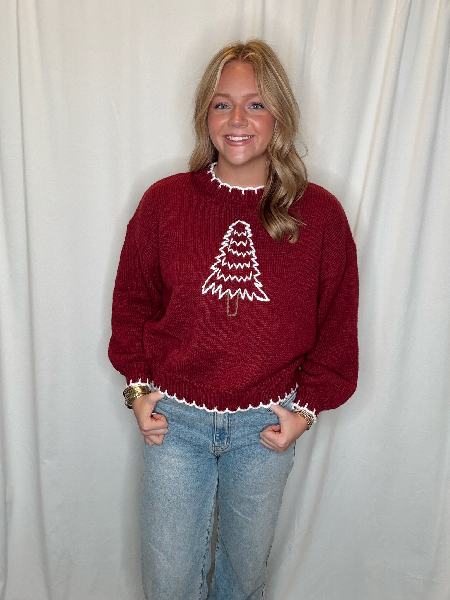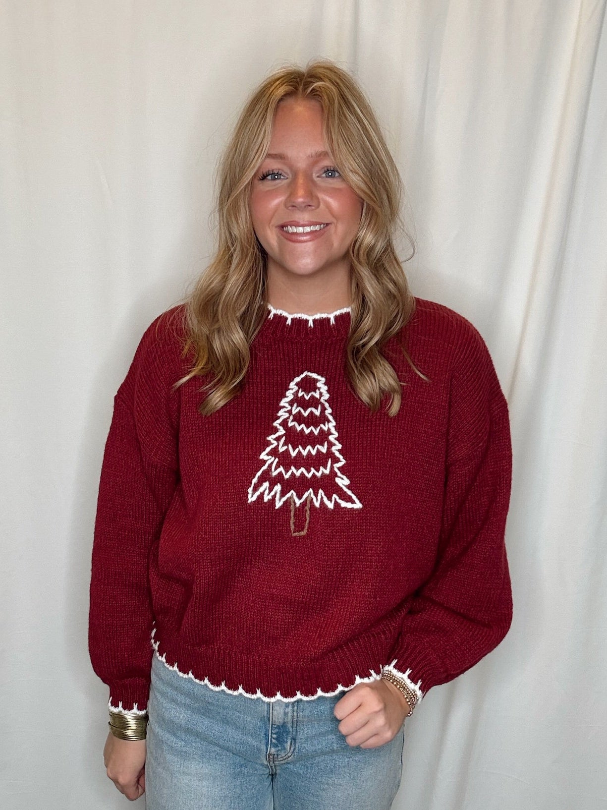 Stitched Christmas Tree/ Maroon