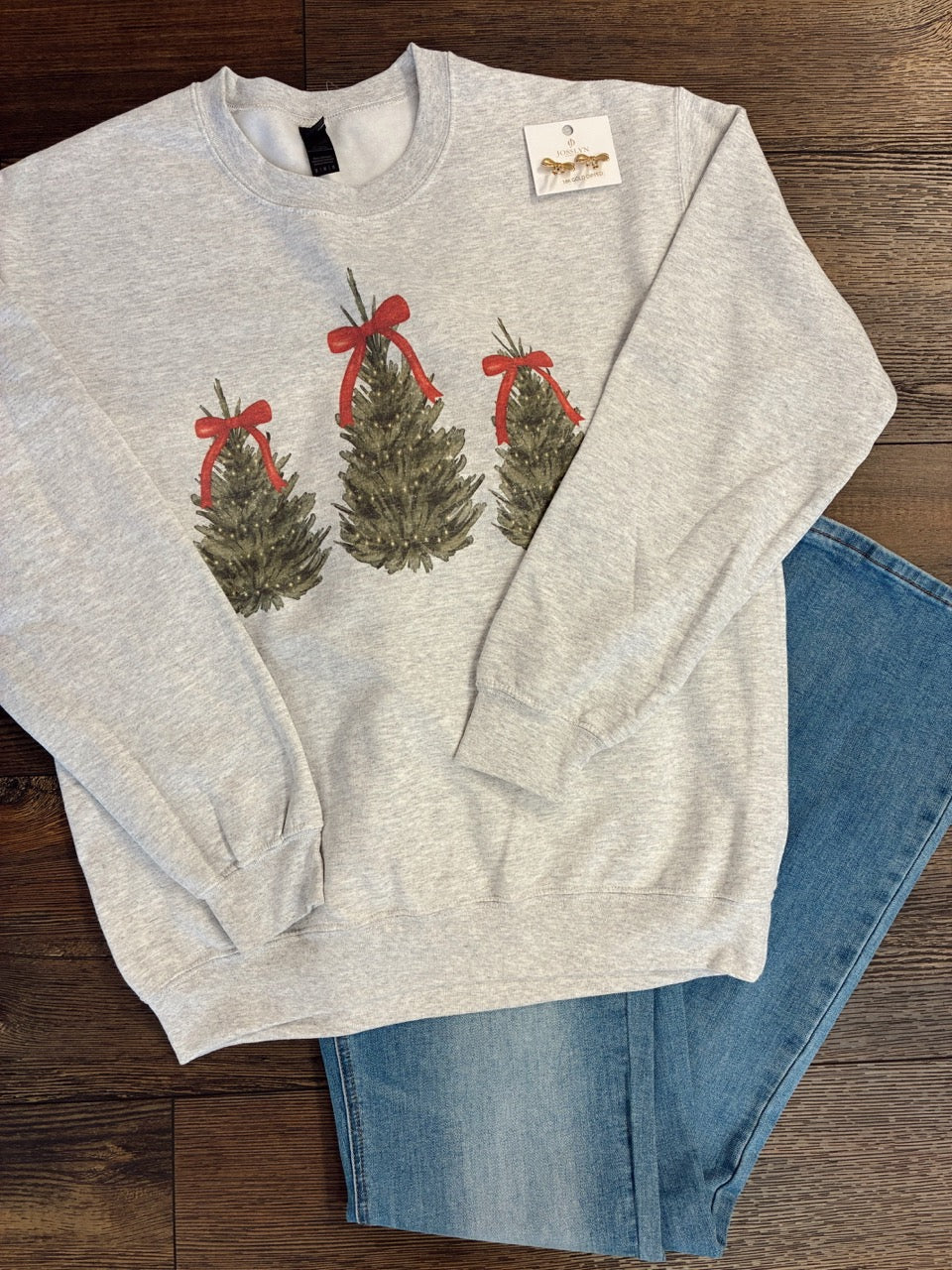 Christmas Tree Bow Sweatshirt/ Ash
