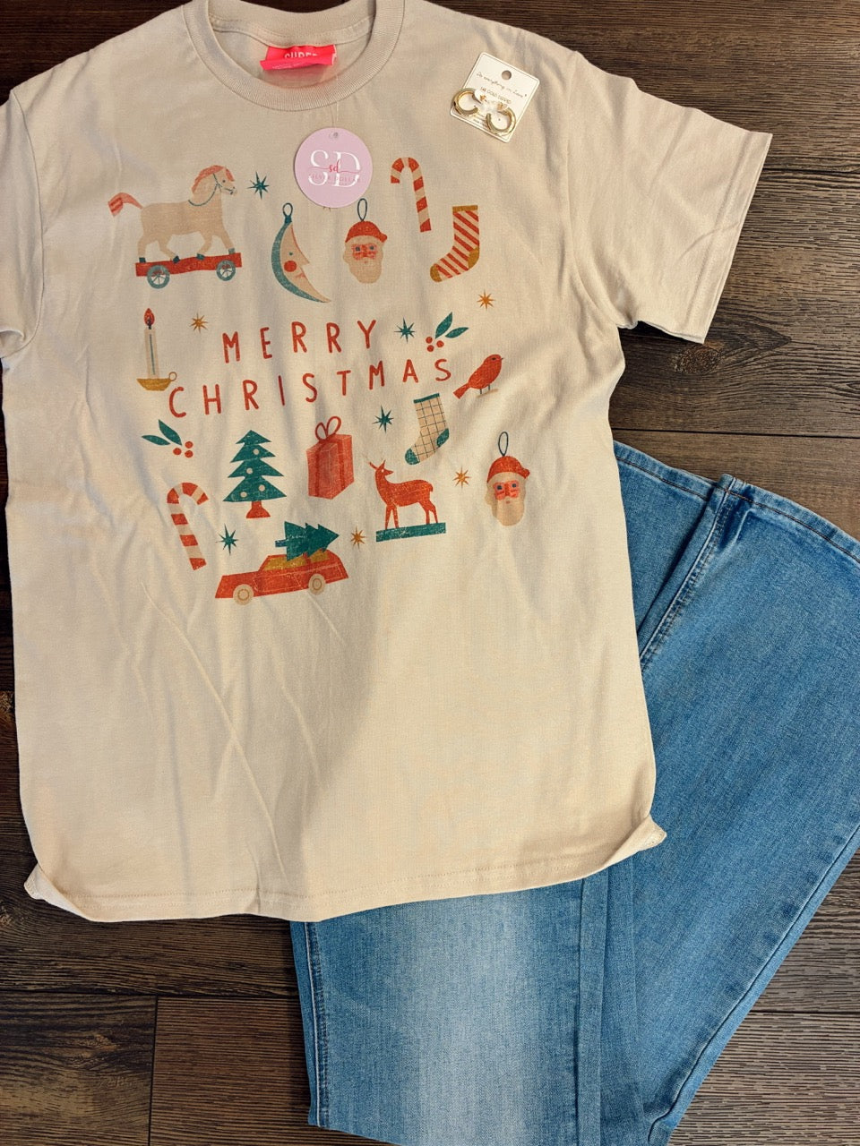 Retro Christmas Tee/ Sand