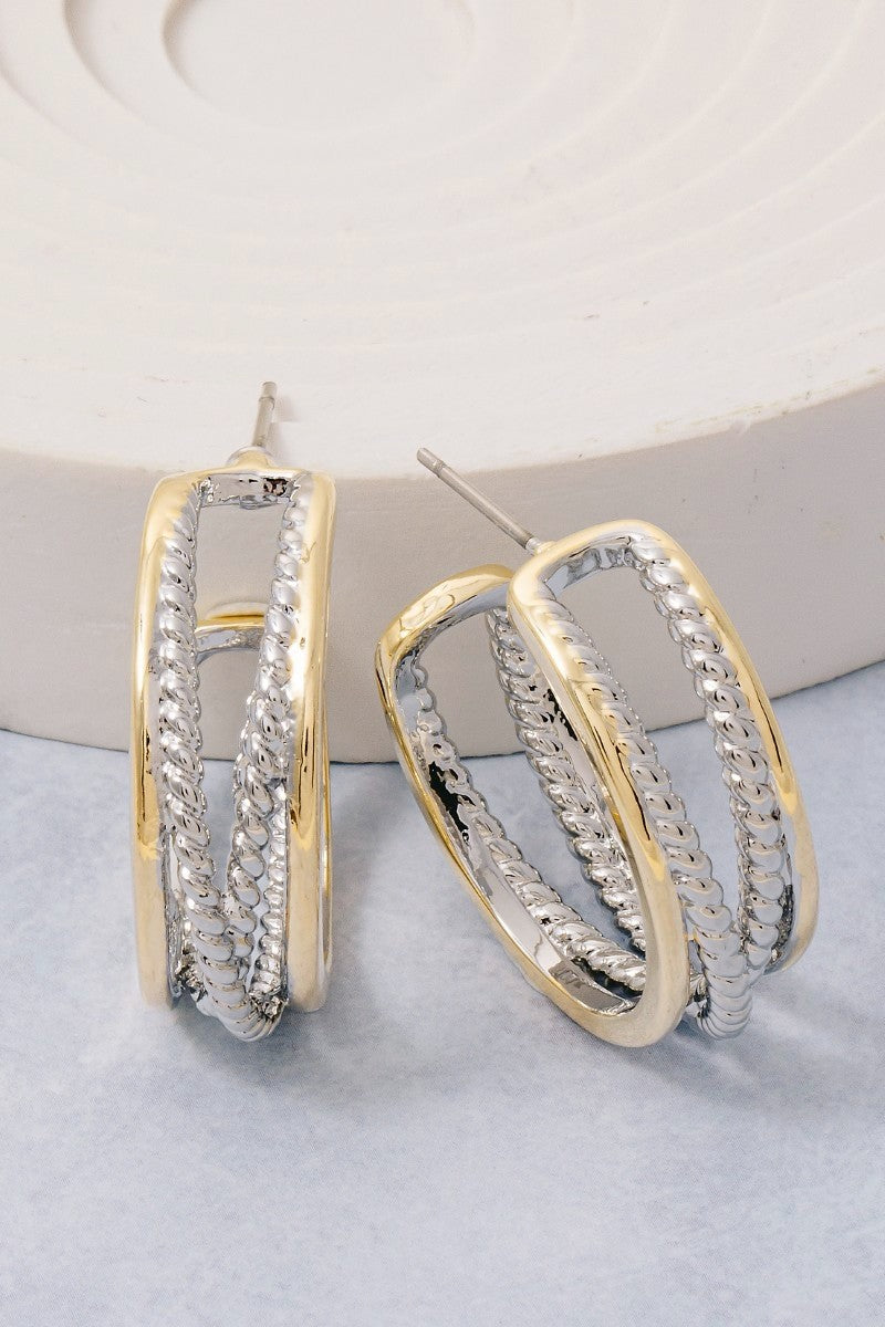 Gold Plated Two Tone Layered Chain Hoop Earrings