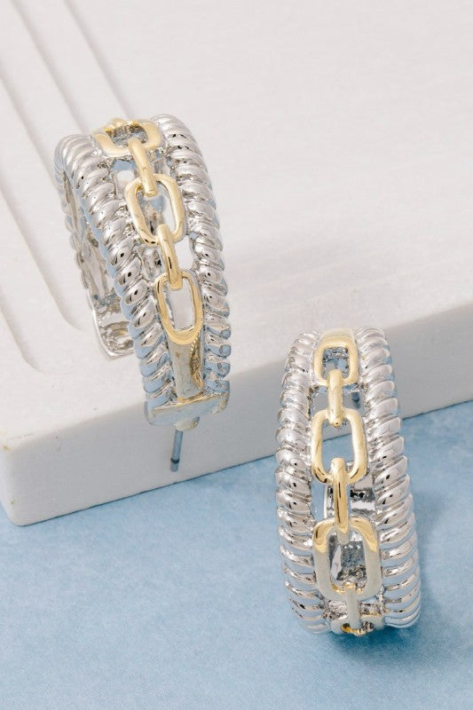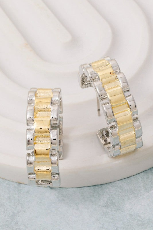 Gold Plated Two Tone Watch Chain Hoop Earrings