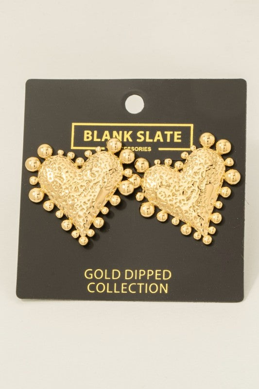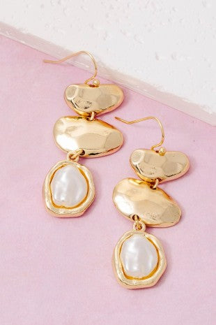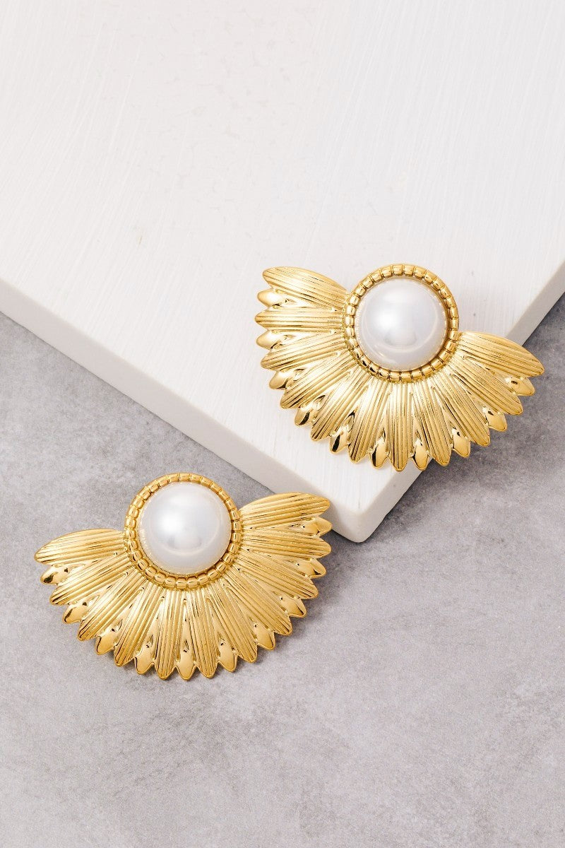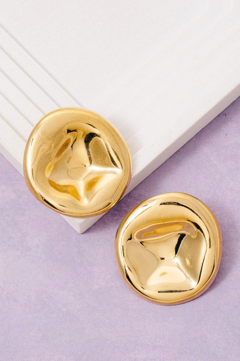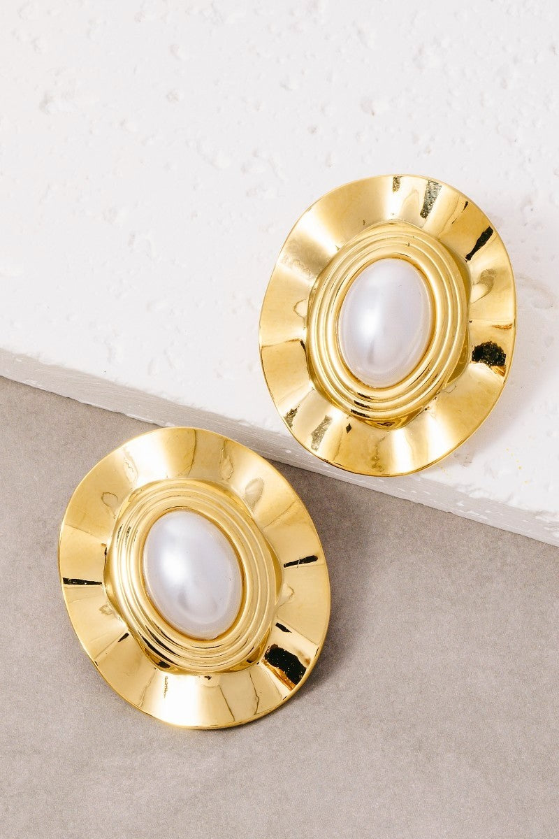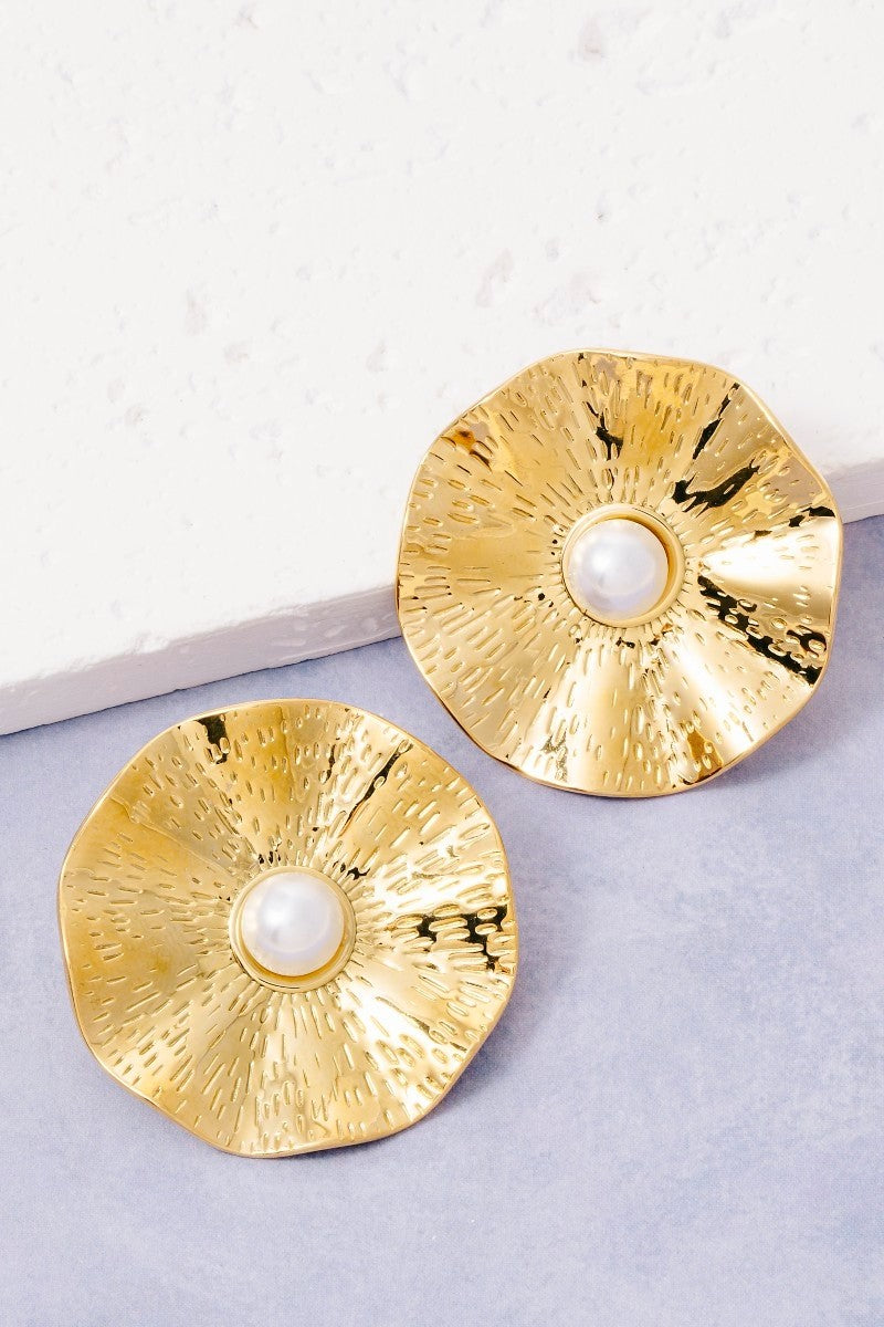 Gold Dipped Pearl Stud Wavy Disc Large Stud Earrings