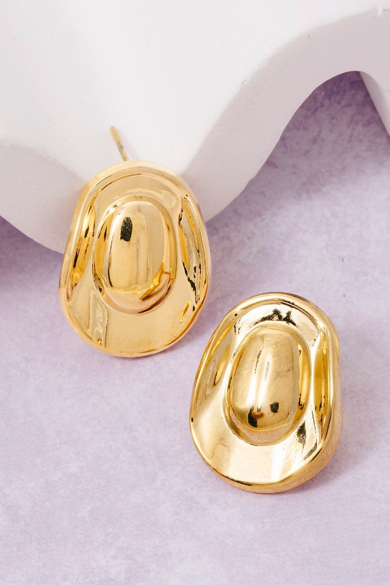 Gold Dipped Western Cowboy Hat Stud Earrings