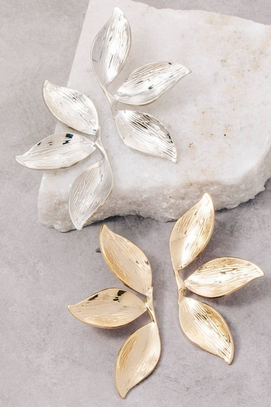 Gold Dipped Pearl Half Flower Large Stud Earrings