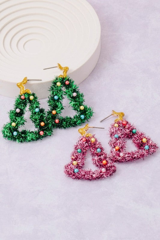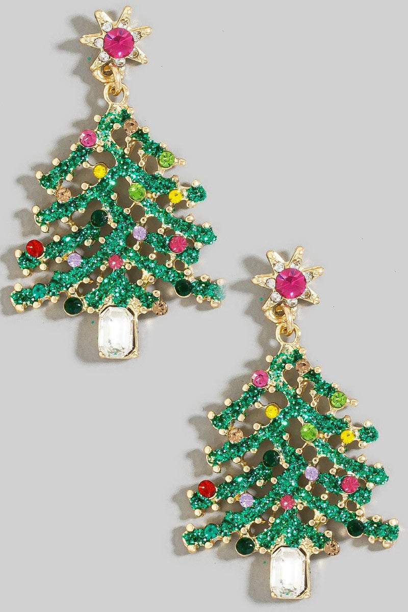 Resin Star And Christmas Tree Holiday Dangle Earrings