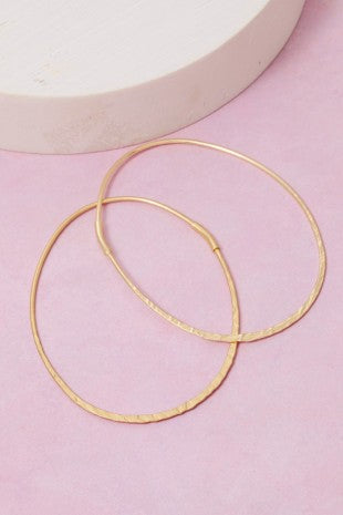 Gold Dipped Dainty Hammered Oval Hoop Earrings