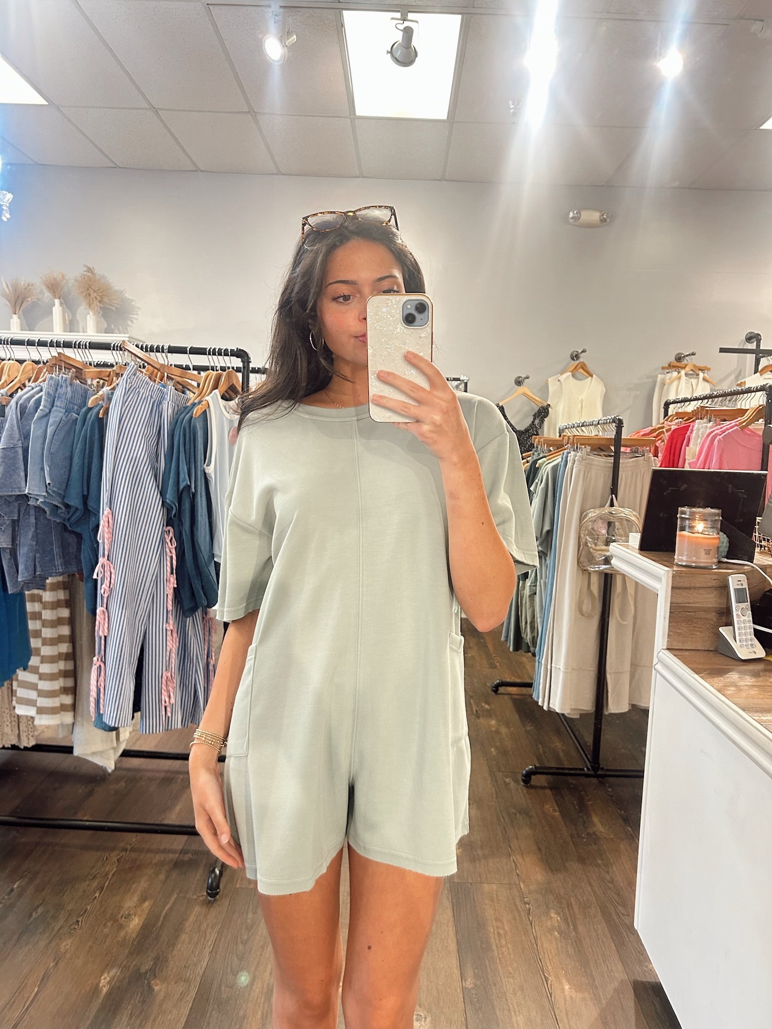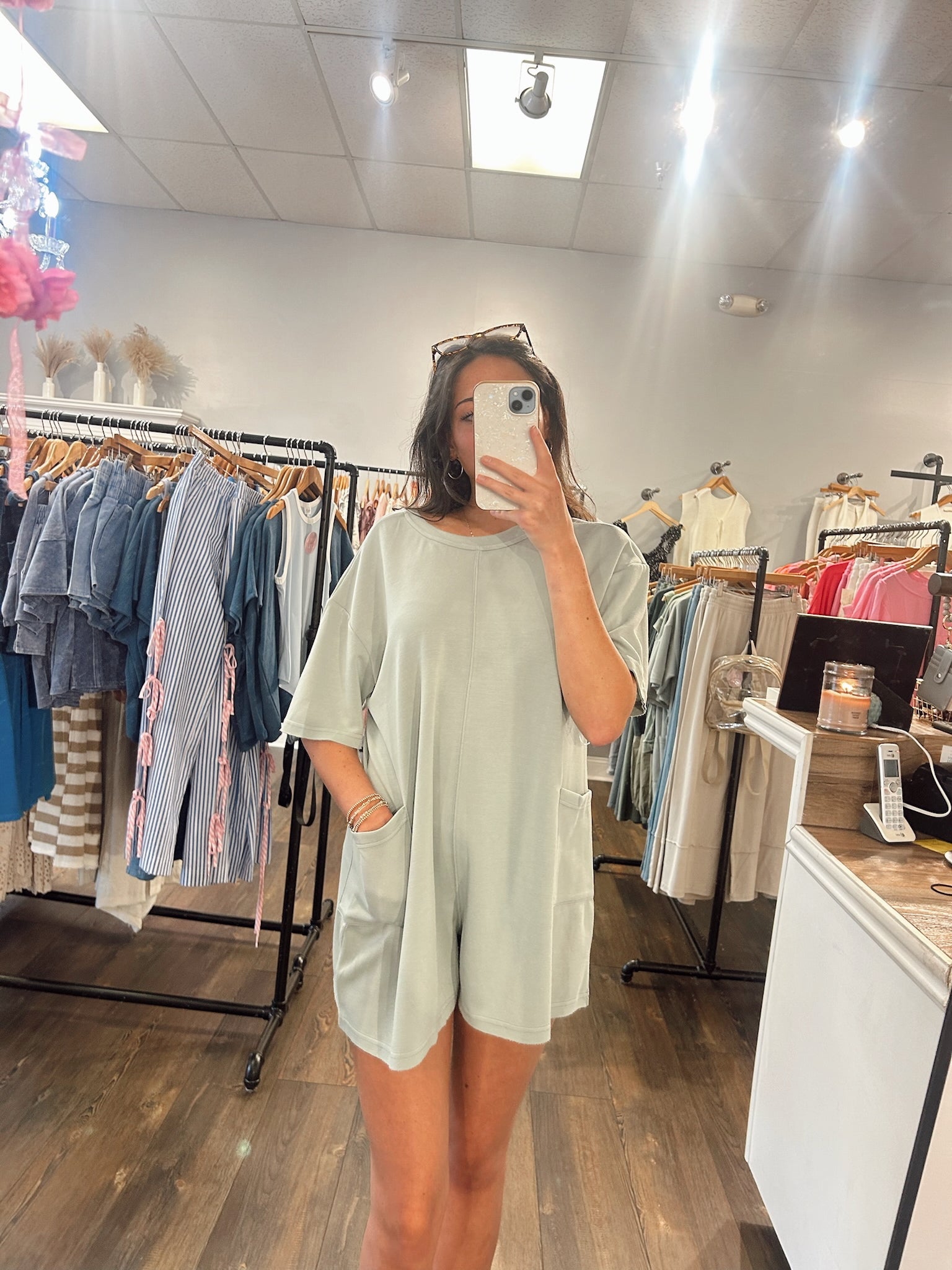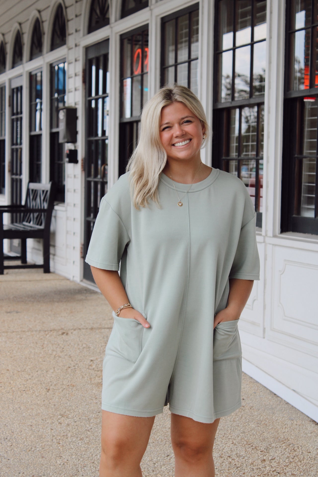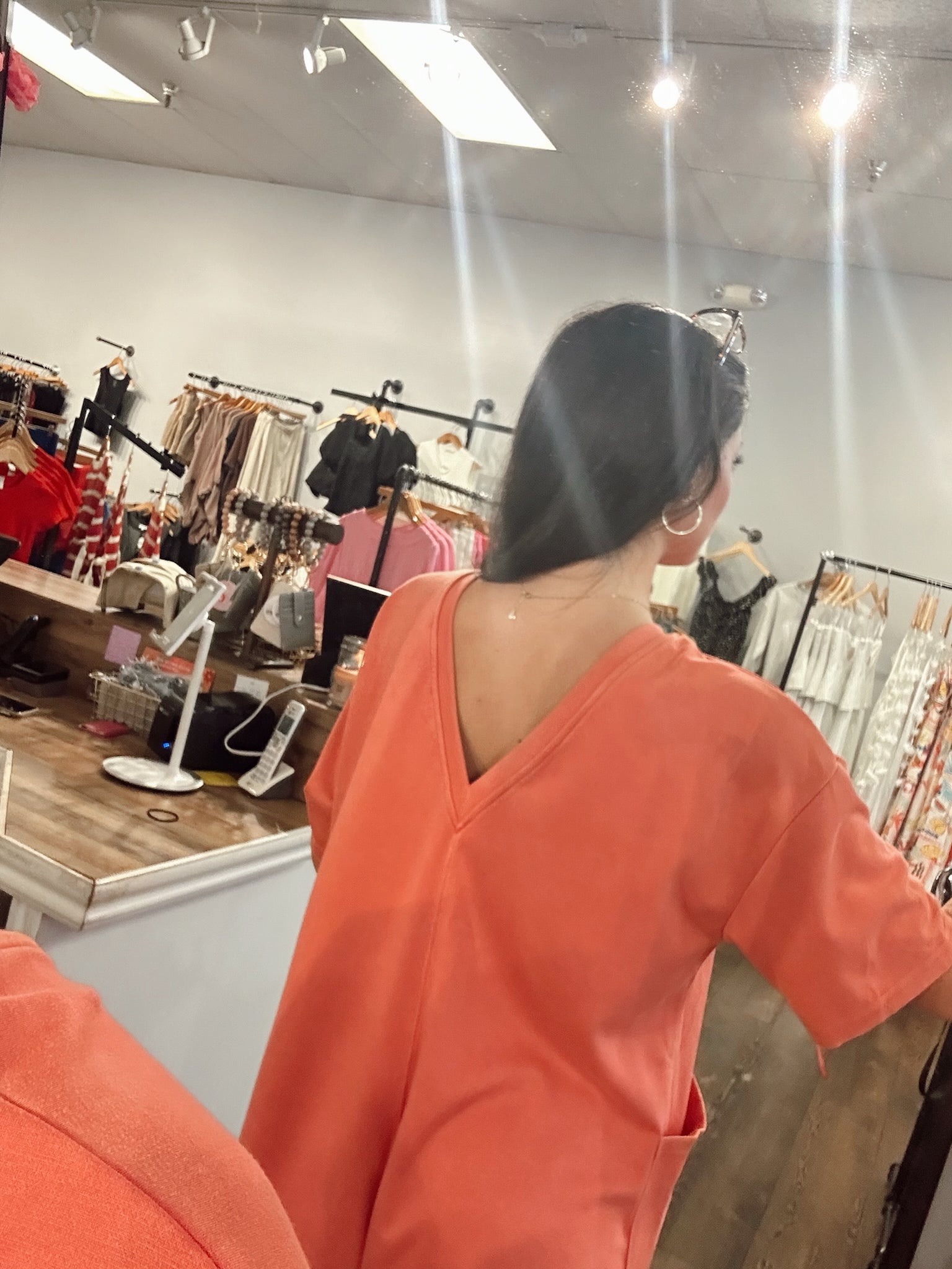 Hear Your Call Patched Pocket Romper/ Coral Orange