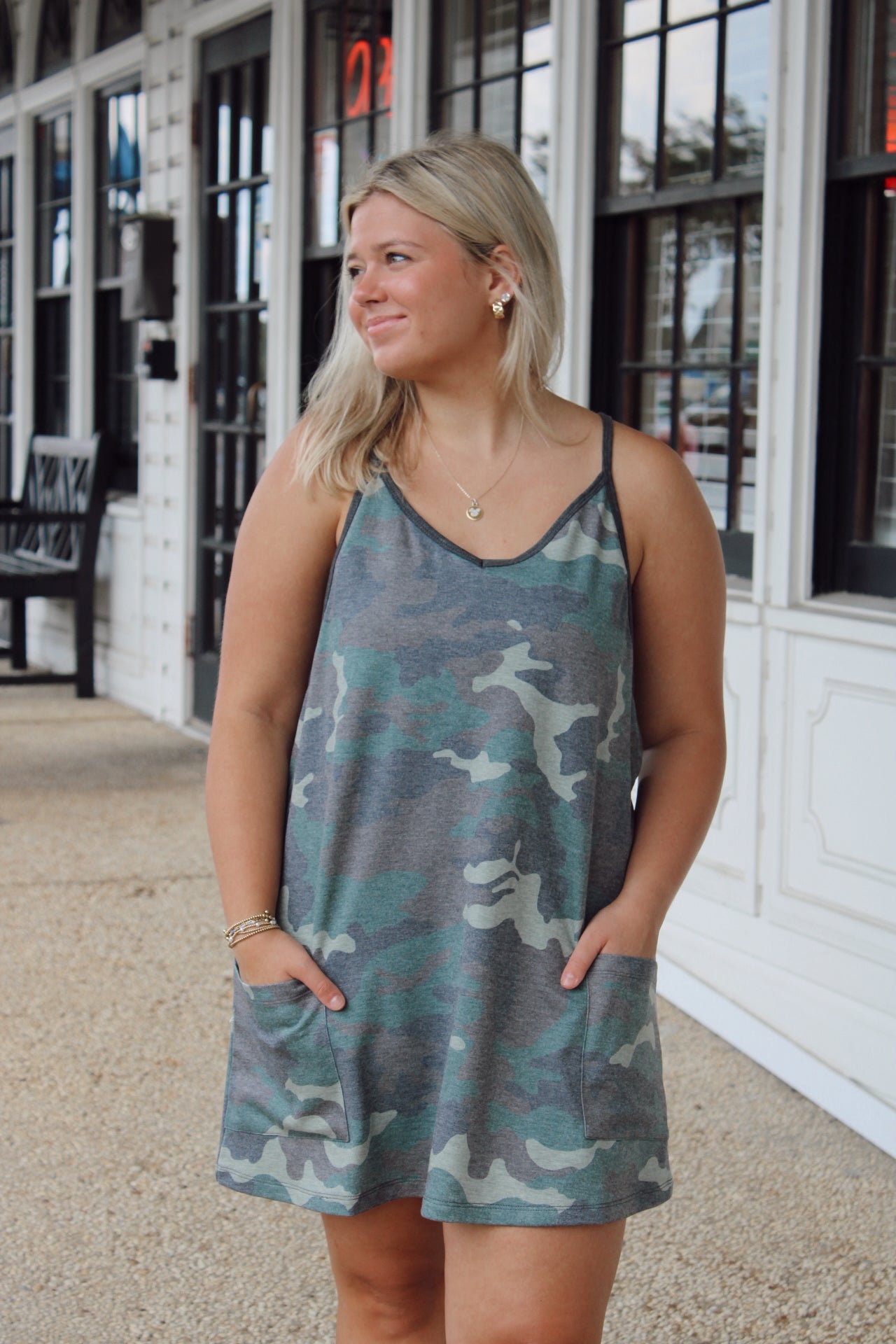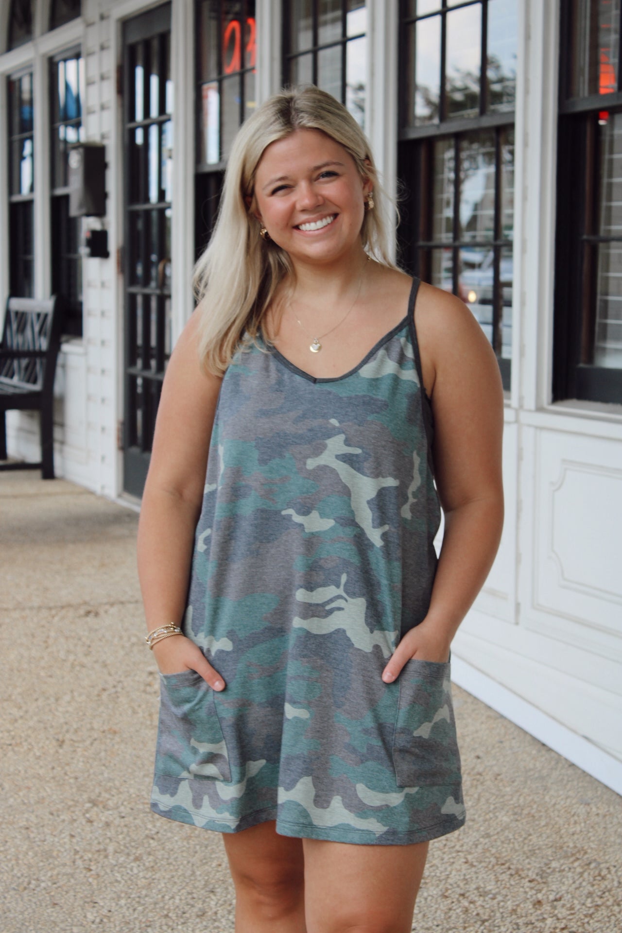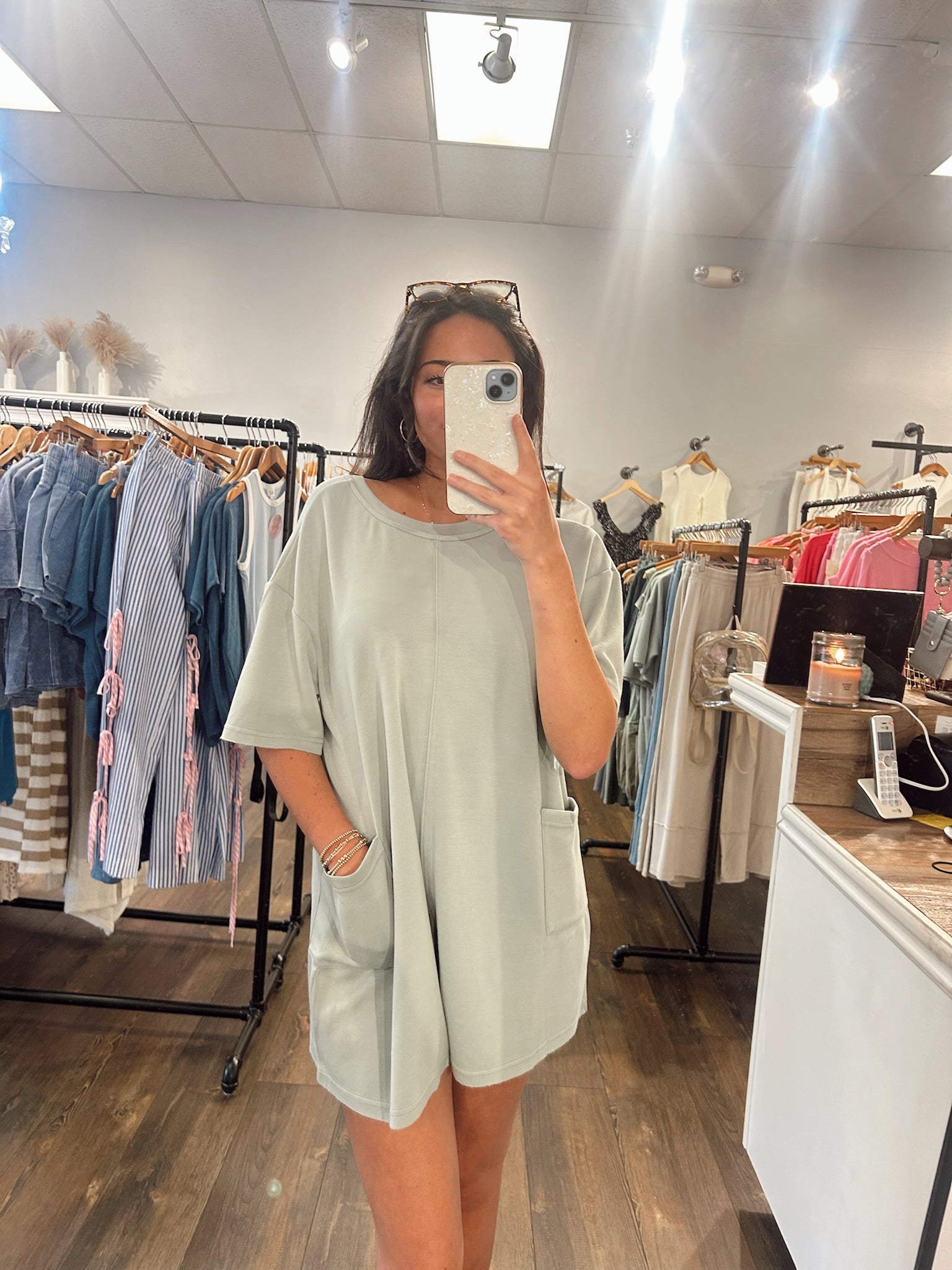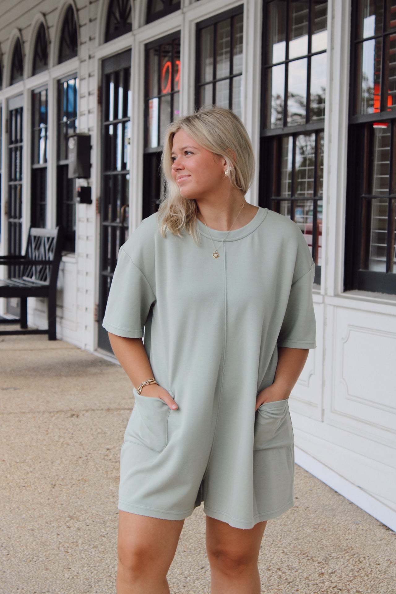 Hear Your Call Patched Pocket Romper/ Coral Orange