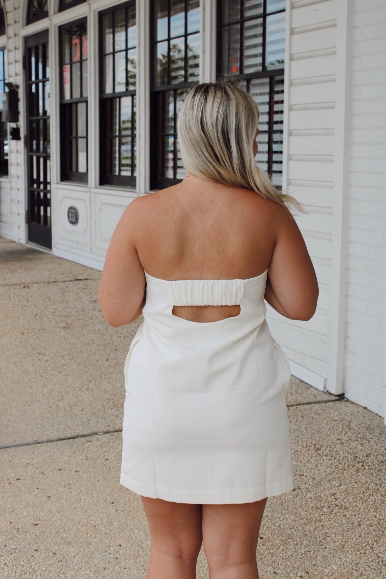 In Your Dreams Strapless Mini Dress/ Light Taupe