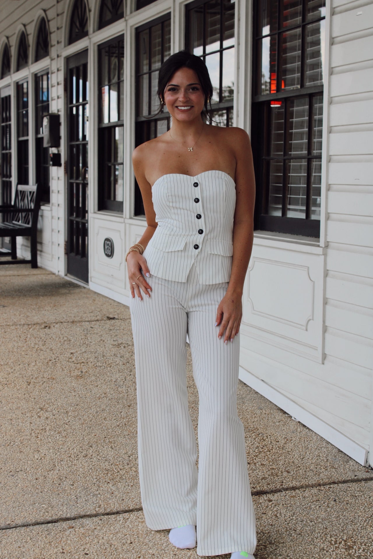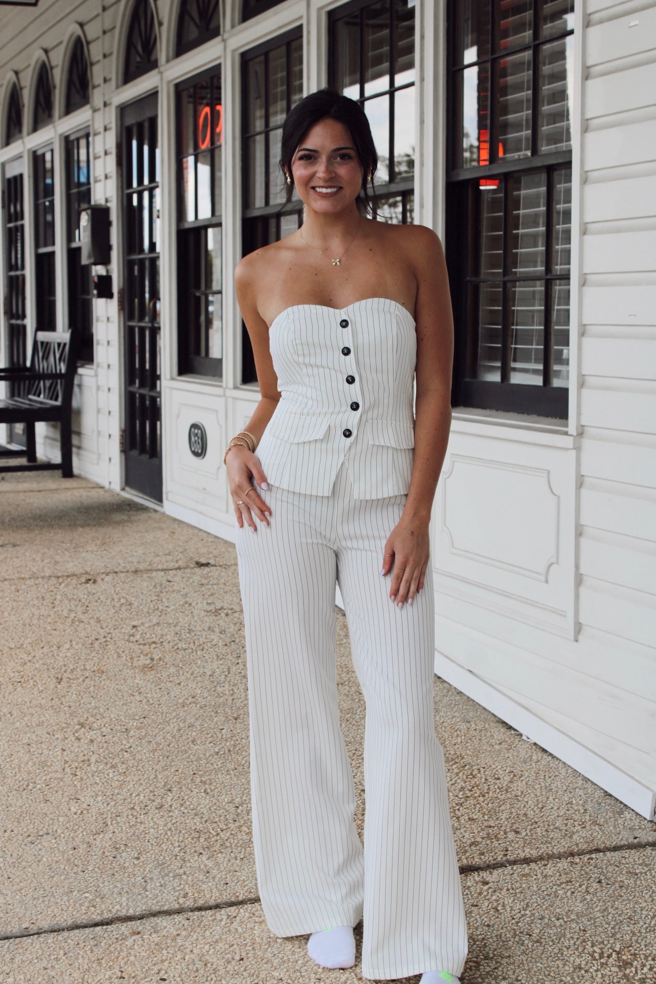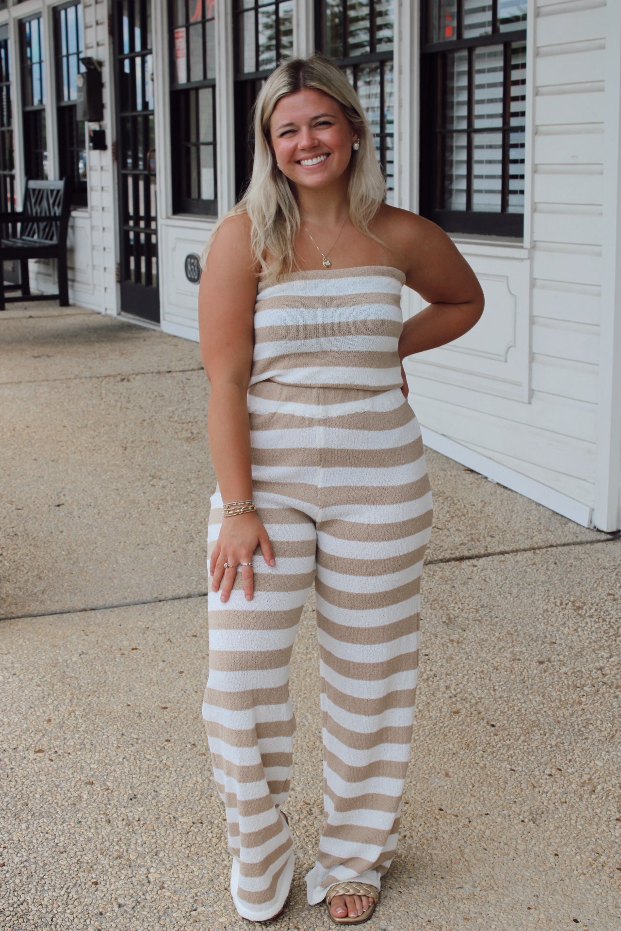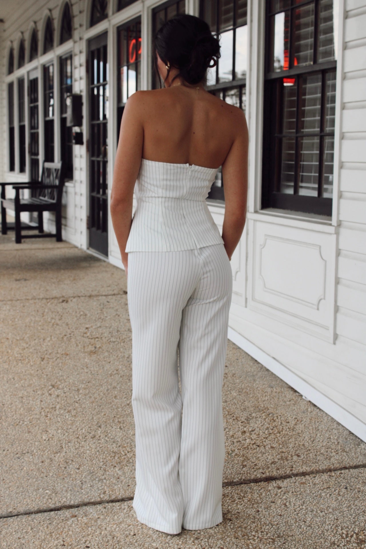 Just That Easy Pin Stripe Jumpsuit/ Off White