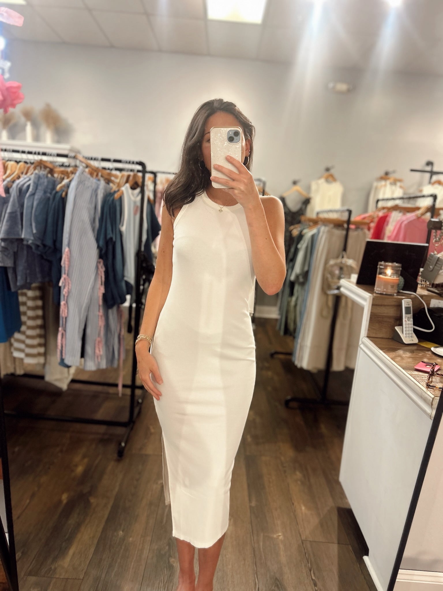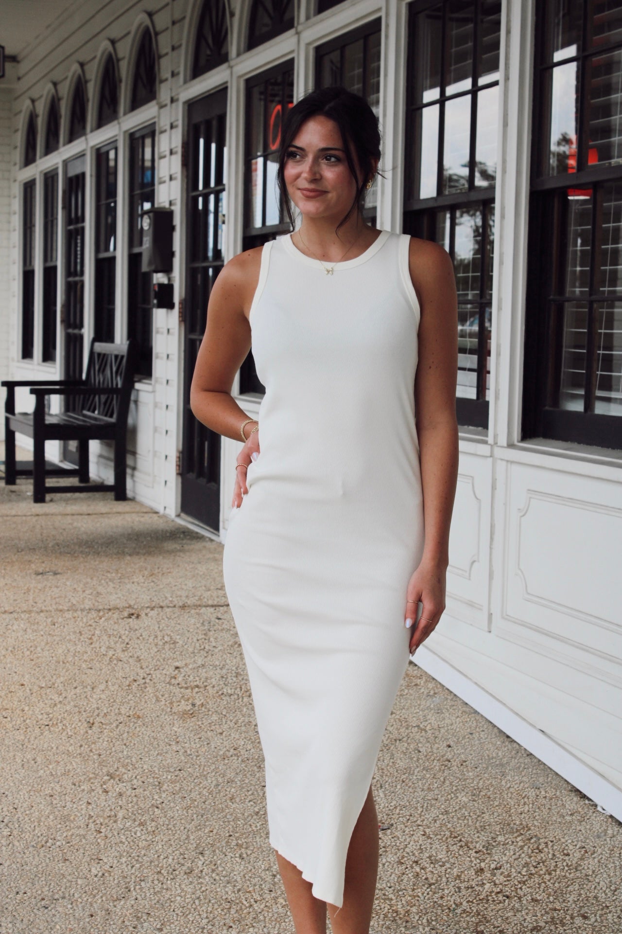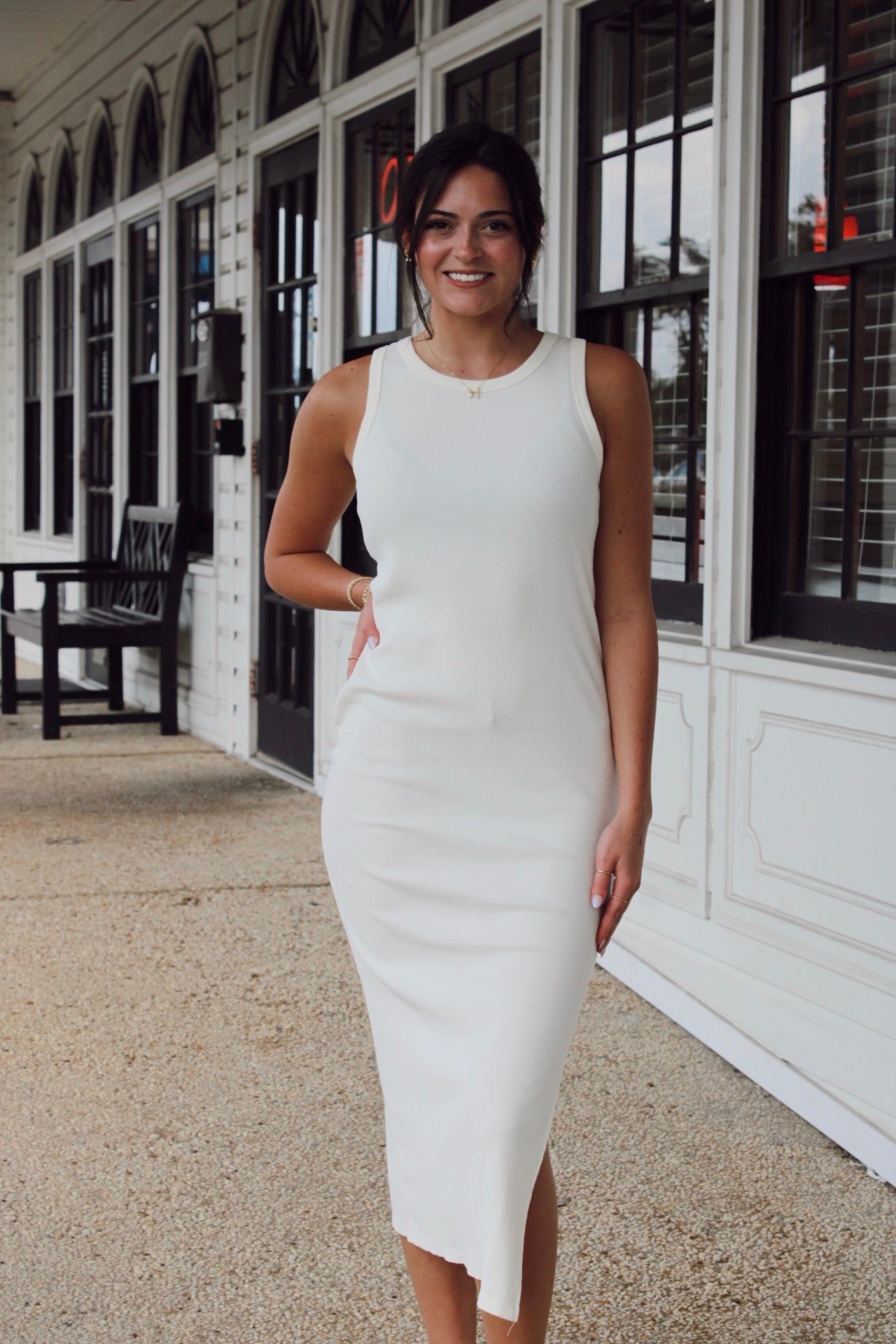 In Your Favor Ribbed Tank Midi Dress/ Cream