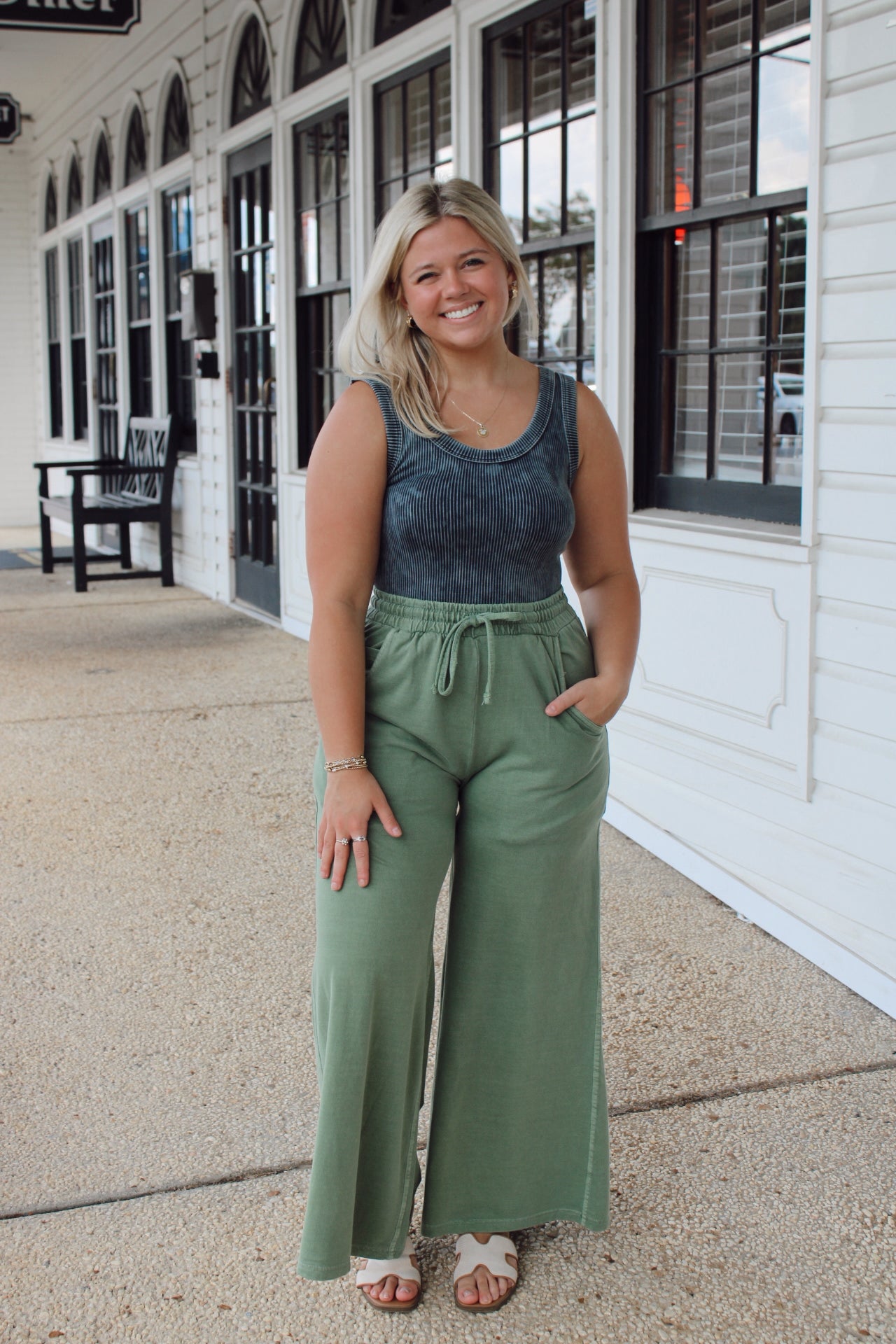 Rae Mode Mineral Washed Wide Leg Pant/ Light Taupe